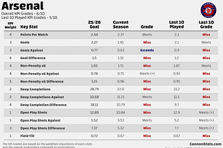 Checking in on how Arsenal are performing compared to the Key Performance Indicators for the 2025-26 season