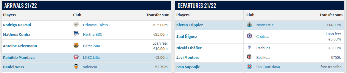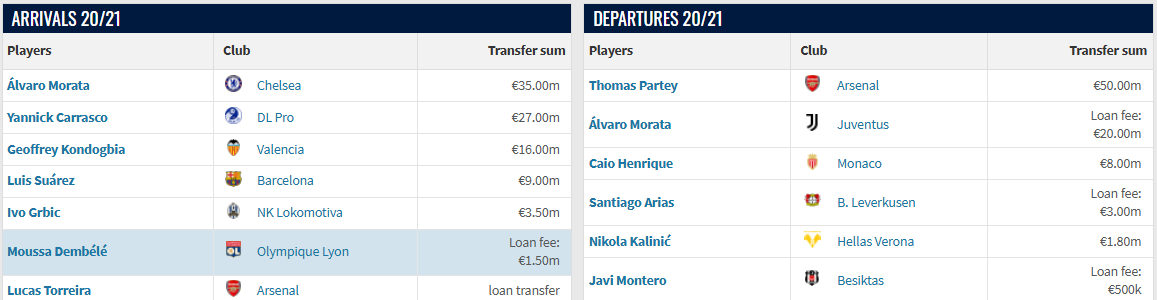 In the same summer window, they made just one significant outgoing move, sending Saúl Ñíguez on a loan to Chelsea that has become a bit notorious in its unabashed levels of disaster.