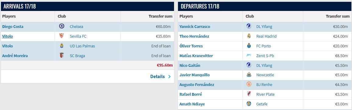 He also sold Yannick Carrasco to DL Yifang in China, which proved to be a good move. The Chinese club paid €30m and Carrasco stayed there until 2020, when Atleti would bring him back for €27m.