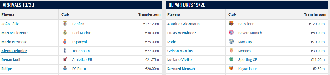 Griezmann, of course, was a key returning player for a fraction of the cost.