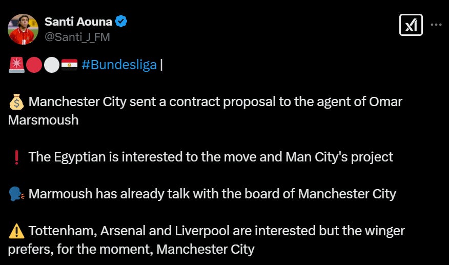 The next name here is Omar Marmoush. The Egyptian put up silly numbers as part of Frankfurt’s attack, particularly over the first half of this season. But anyone wanting him was quickly met with a major obstacle: He wanted Manchester City above all else.