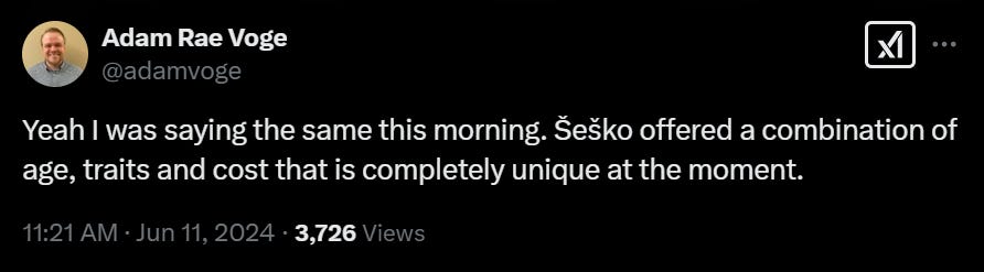 Realistically, you need to get up to at least number 7 (Elye Wahi) before you have any interest at all in a signing here. Wahi has been linked with Arsenal before and is just 22, but doesn’t move the needle enough as a prospect or as a current rotational player to make this jump now.