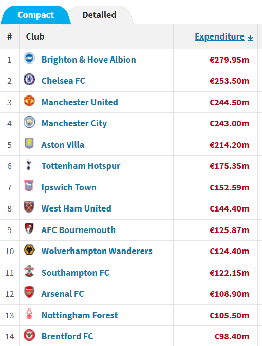 What’s behind this idea? It’s pretty simple: Arsenal spent right around £100 million this past summer after talk of going bigger on its preferred targets during the previous winter window. That spend ranks 12th in the Premier League at present for the season.