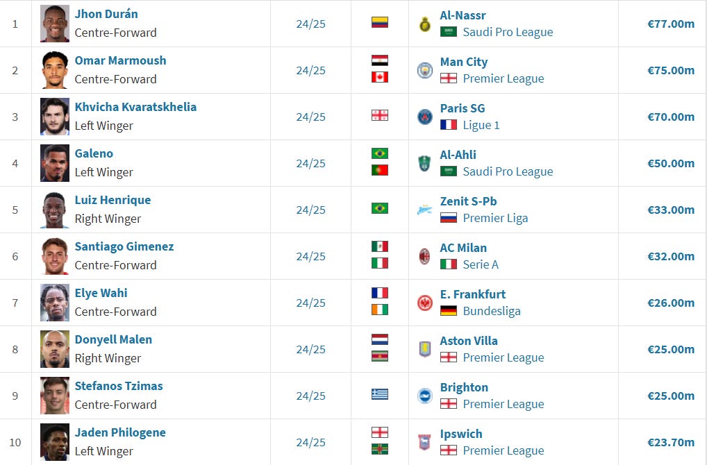 And with that, what a segue we have into Jhon Durán, whose move to Saudi Arabia cost Al-Nassr £64 million in fees alone. That’s more than £5 million per Premier League goal he’s scored to date.