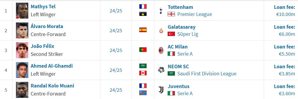 Morata is similarly a familiar name, but he’s headed to Turkey on a €6m loan with an €8m option to purchase. He’s going to the club that already has Victor Osimhen.