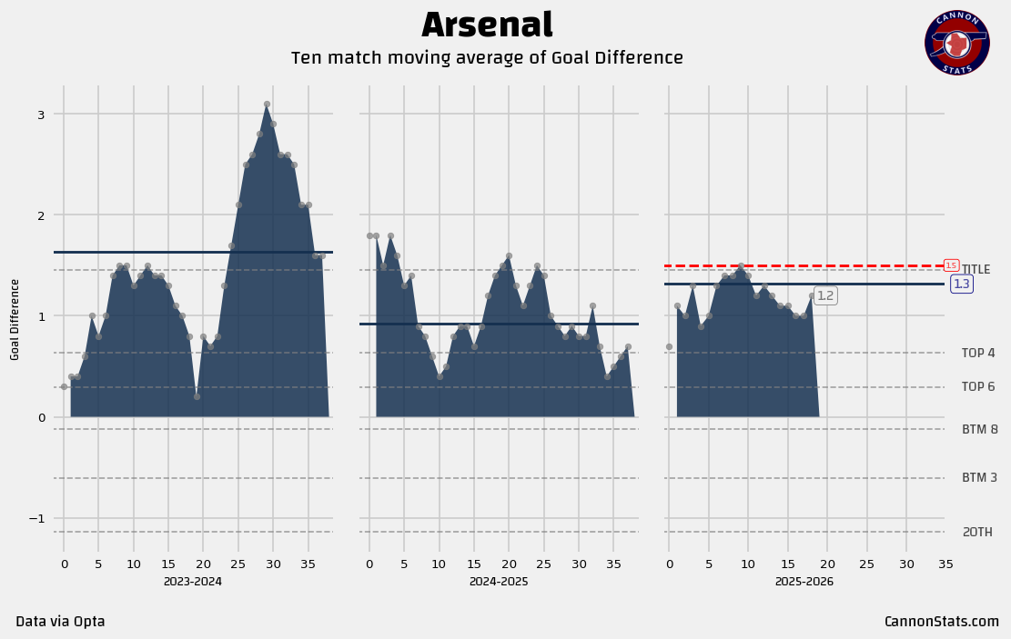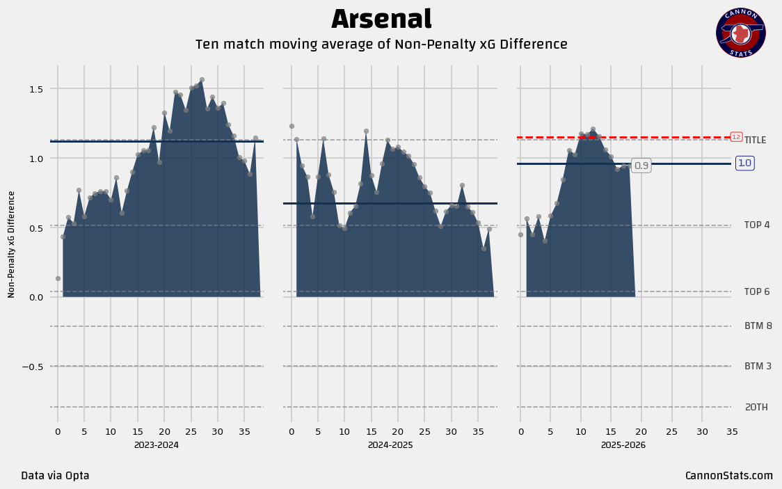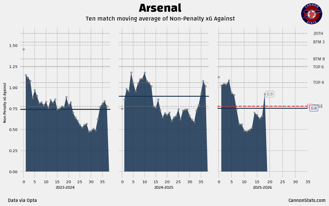 The team is starting to get healthy, the full complement of attackers are available, Gabriel is back. That should hopefully help see the “real” Arsenal and start pushing these numbers up on both sides.