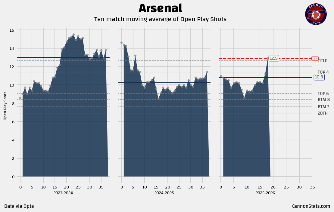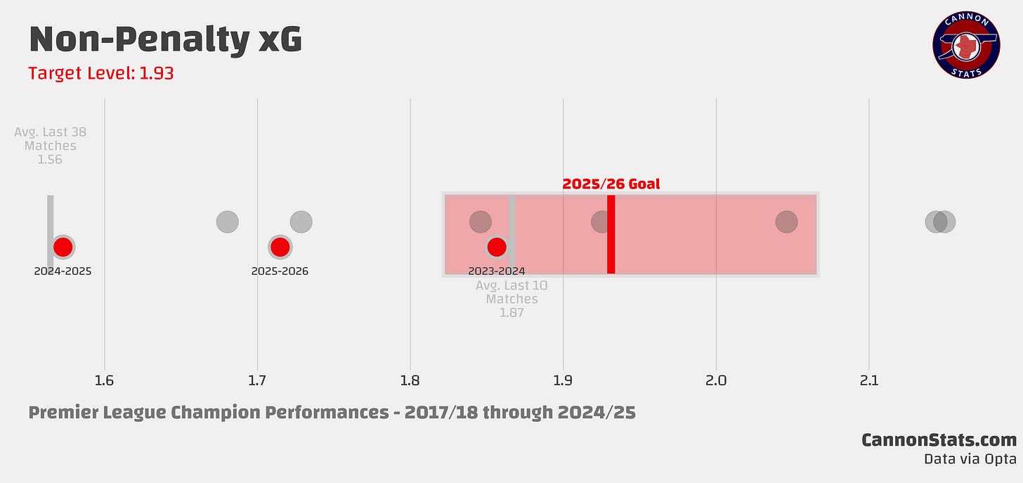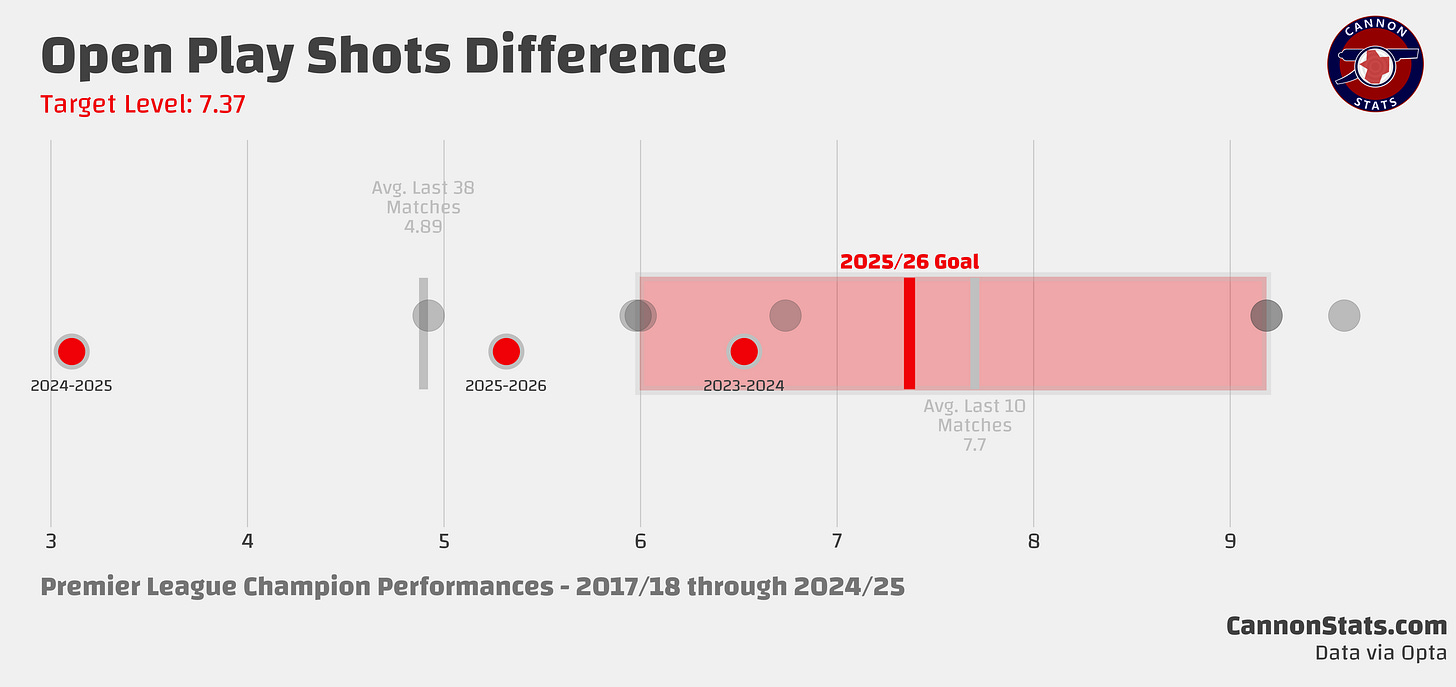 ↗️ I can’t lie, I have been a touch worried about the attacking shot volume this season. It hasn’t been bad, but it hasn’t been title winning level either.