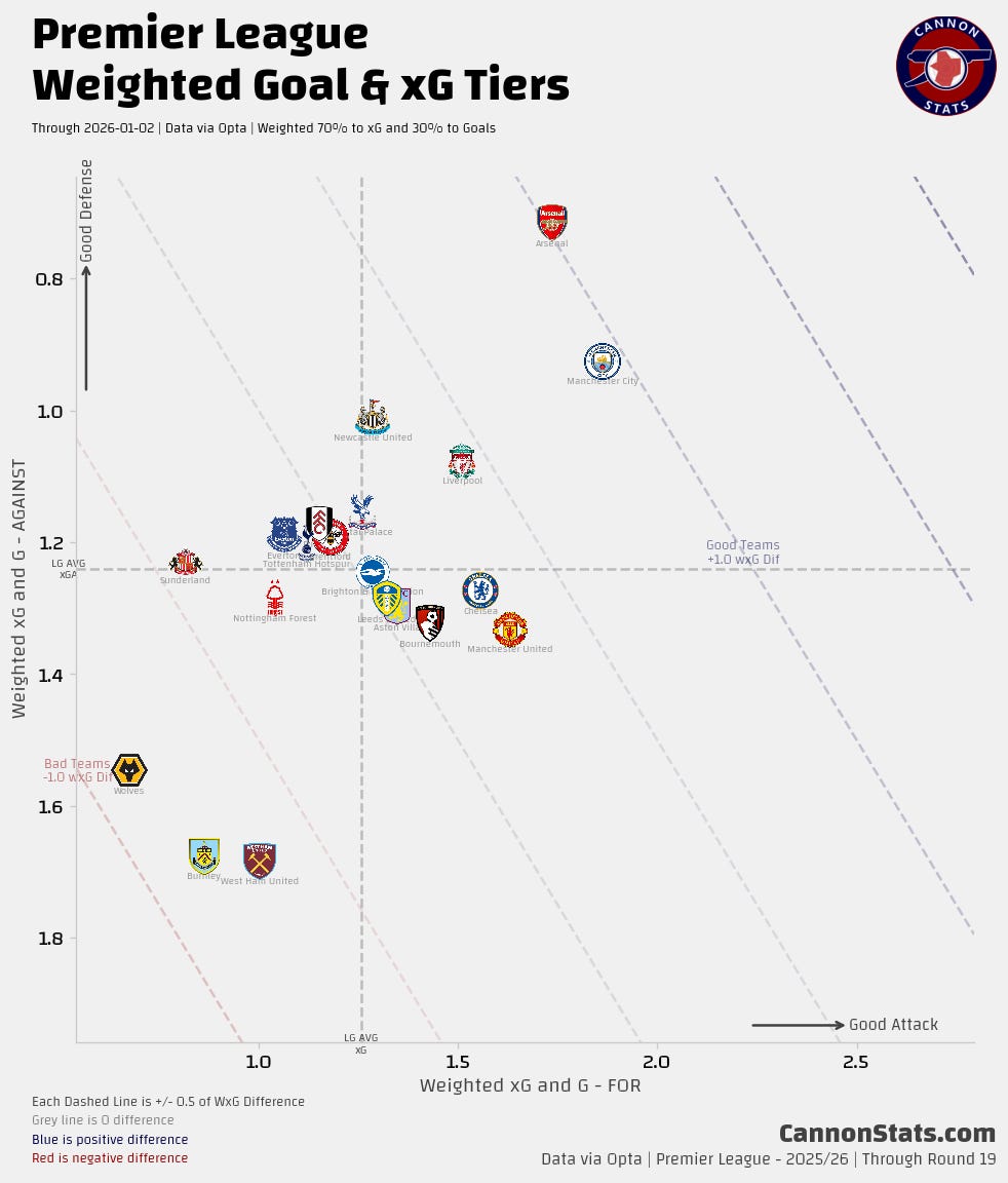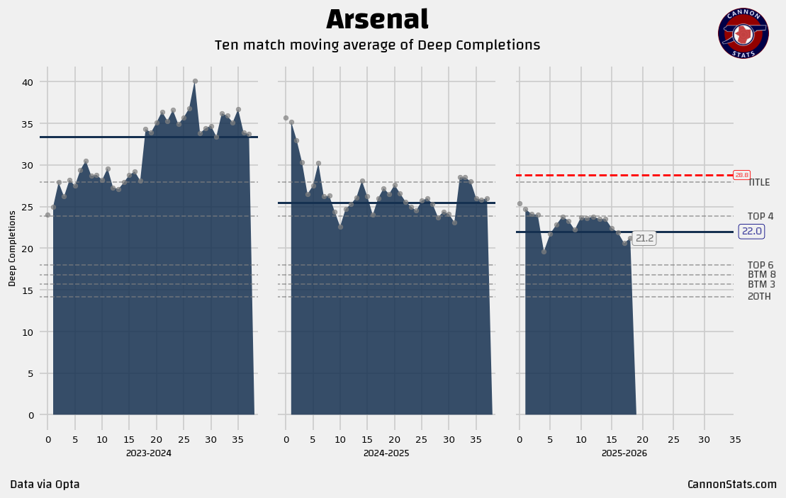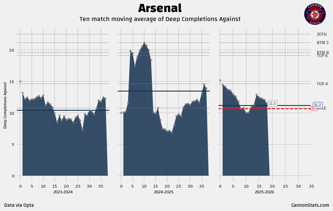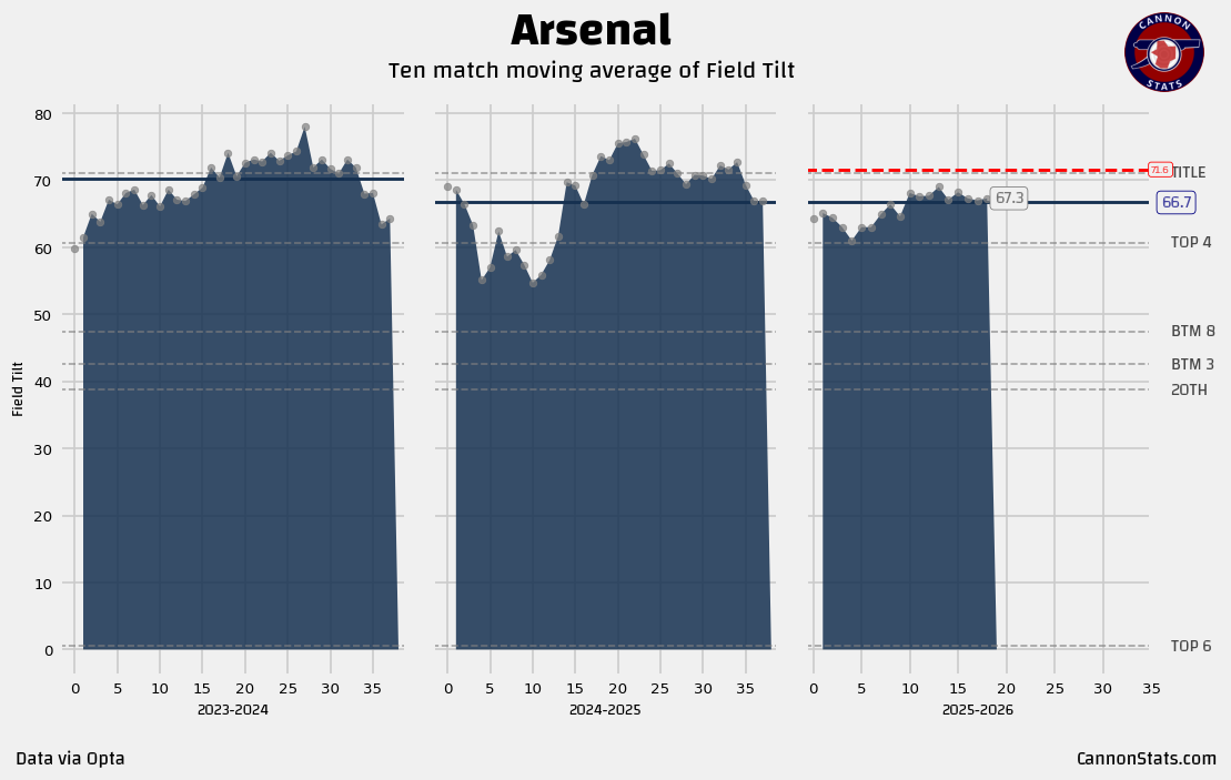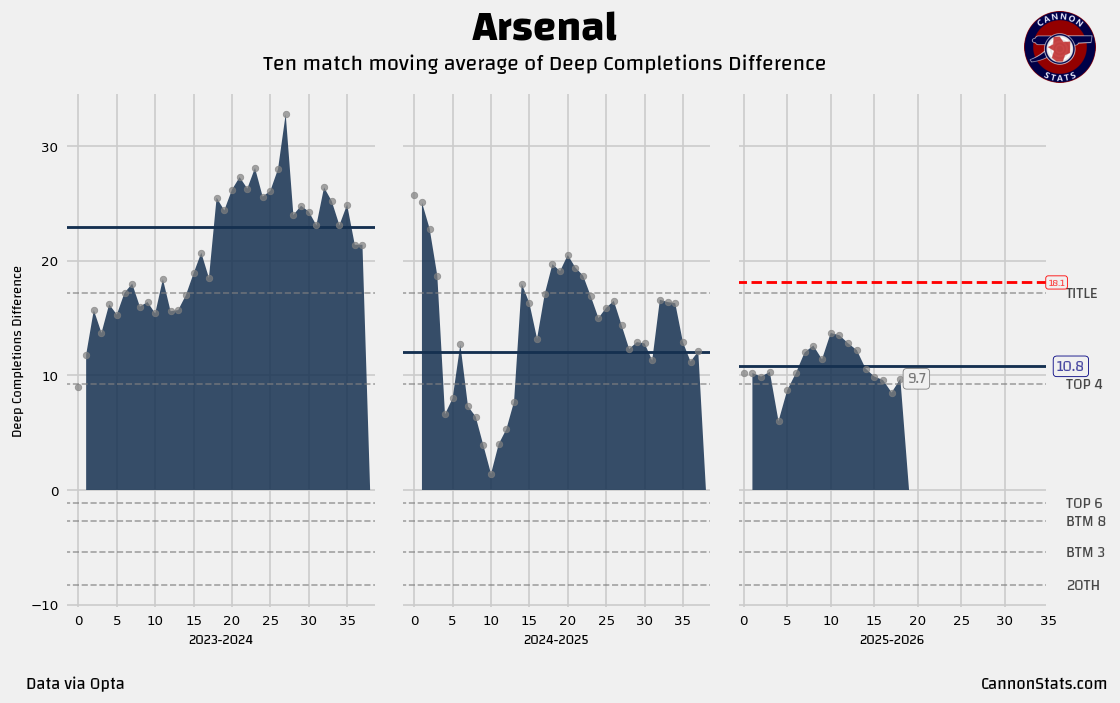 ➡️ Arsenal’s numbers are ever so slightly below expectations, but it is moving in the right direction here. I don’t really have any worries here. Arsenal are a team that continues to dominate field position as good as anyone else in the League.