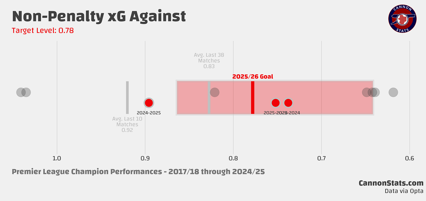 Checking in on how Arsenal are performing compared to the Key Performance Indicators for the 2025-26 season