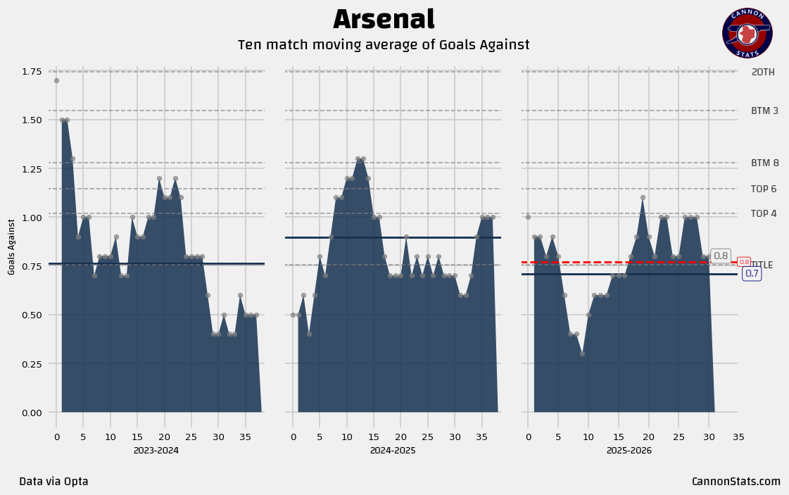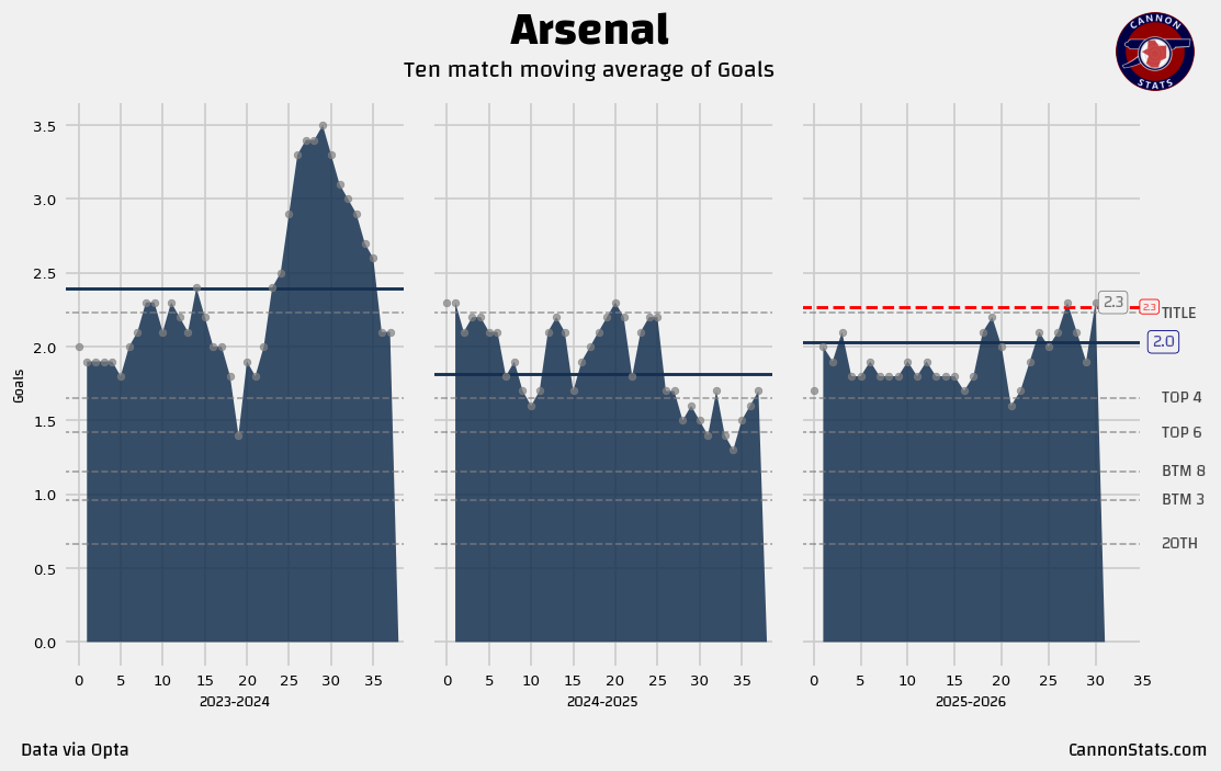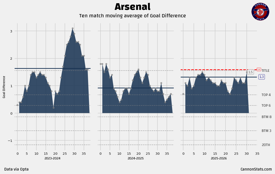 Arsenal compared to expectations: KPI Update for March 2025/26