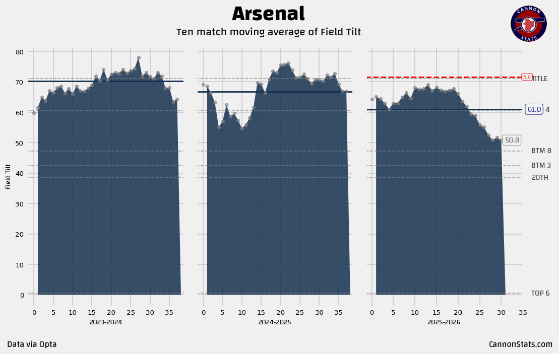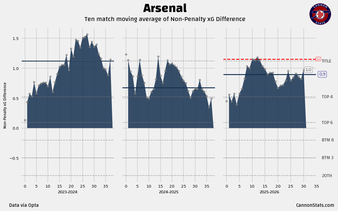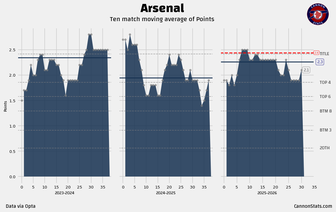 Before we fully switch over, it is nice to get a sense of where things stand and I think that while off the pace of the average winner of recent vintage, this current Arsenal team is standing up fairly well.