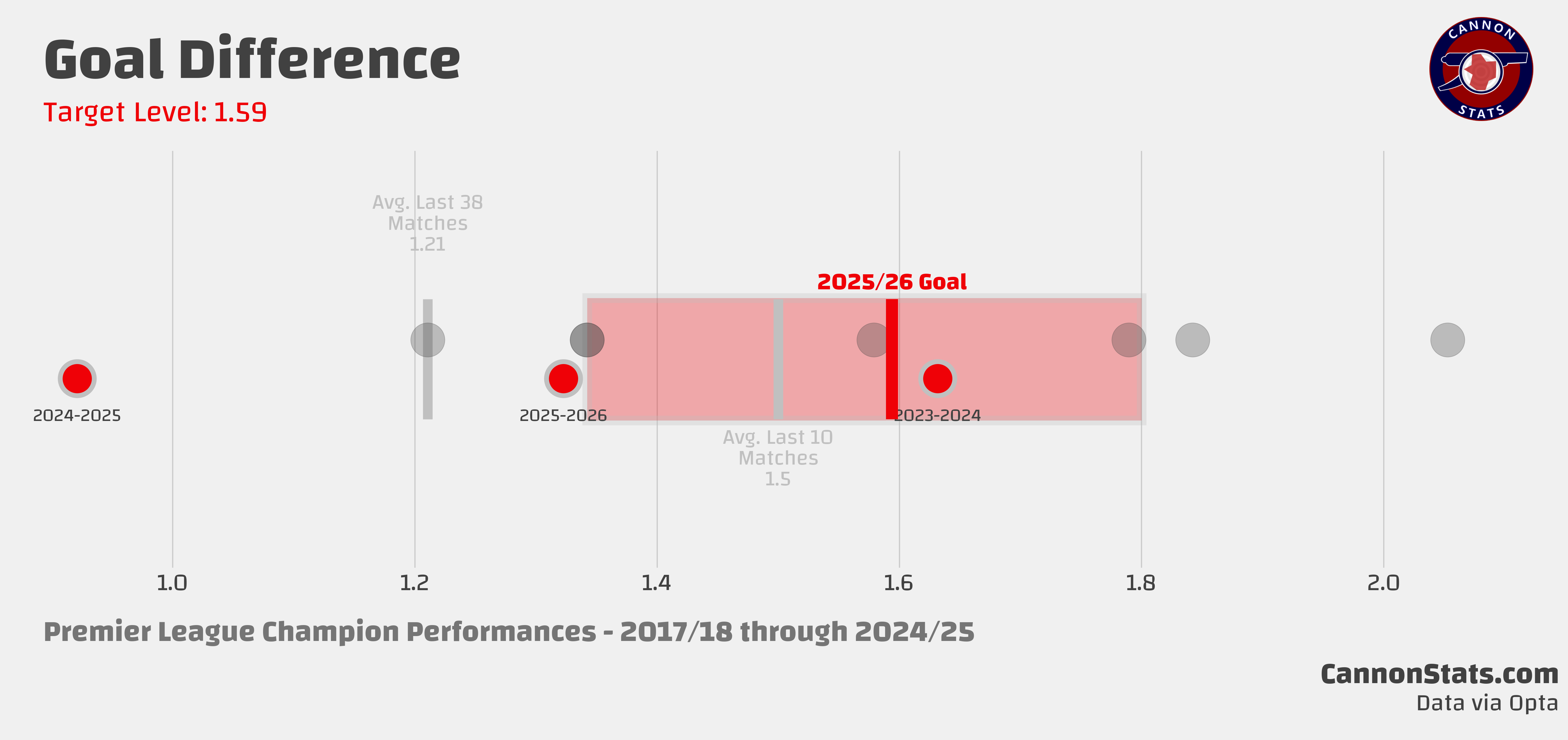 The numbers are below historical norms for goals scored and overall difference but there isn’t a team that is doing it better than them in the League right now. It’s a “miss” for the targets but it really isn’t in the context of the season.