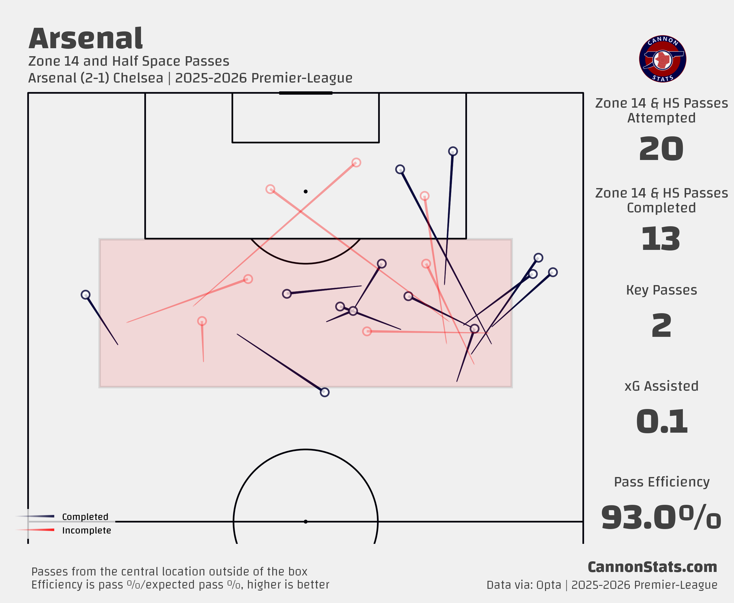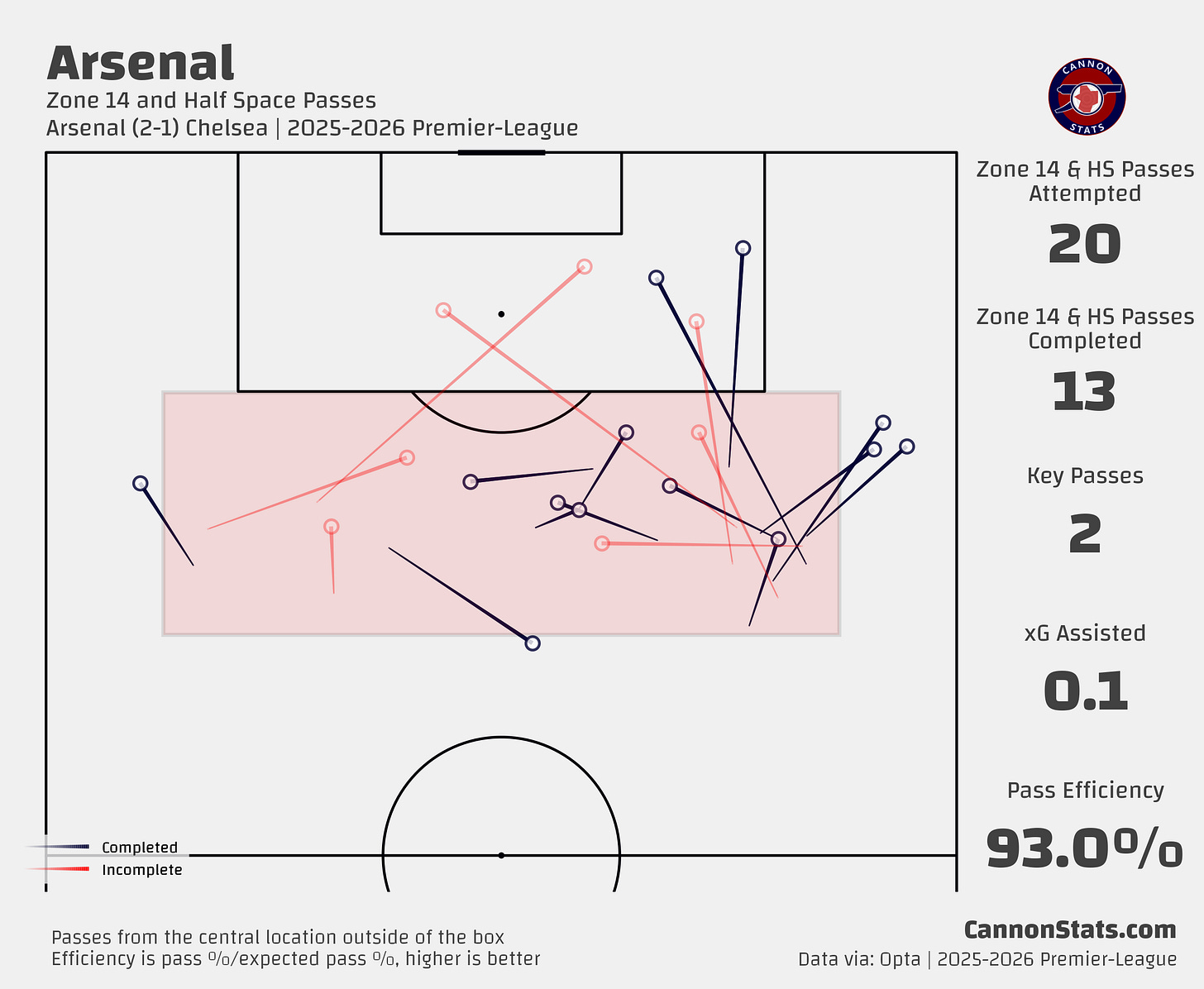 14 - Passes Attempted by Arsenal, compared to 63 for Chelsea