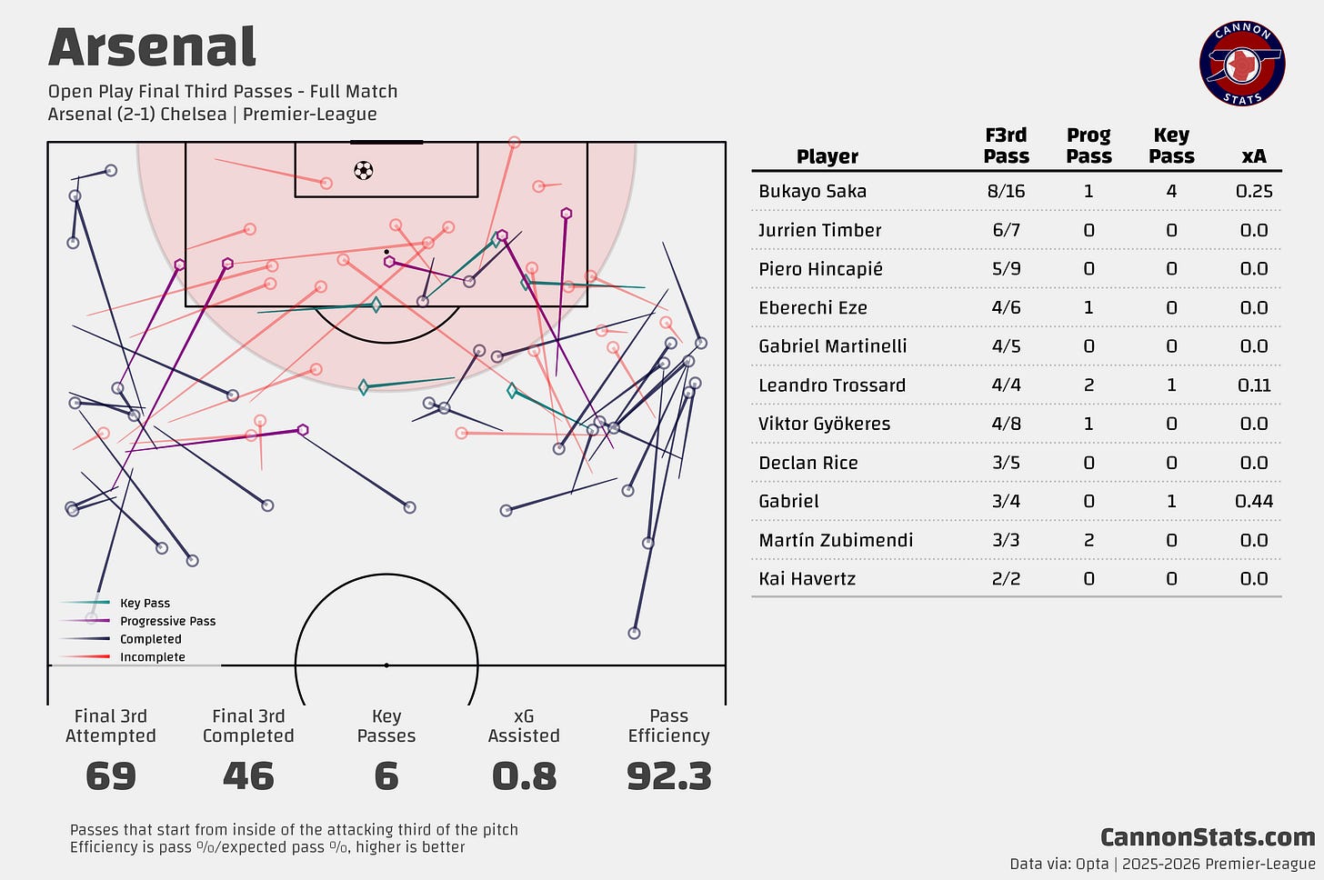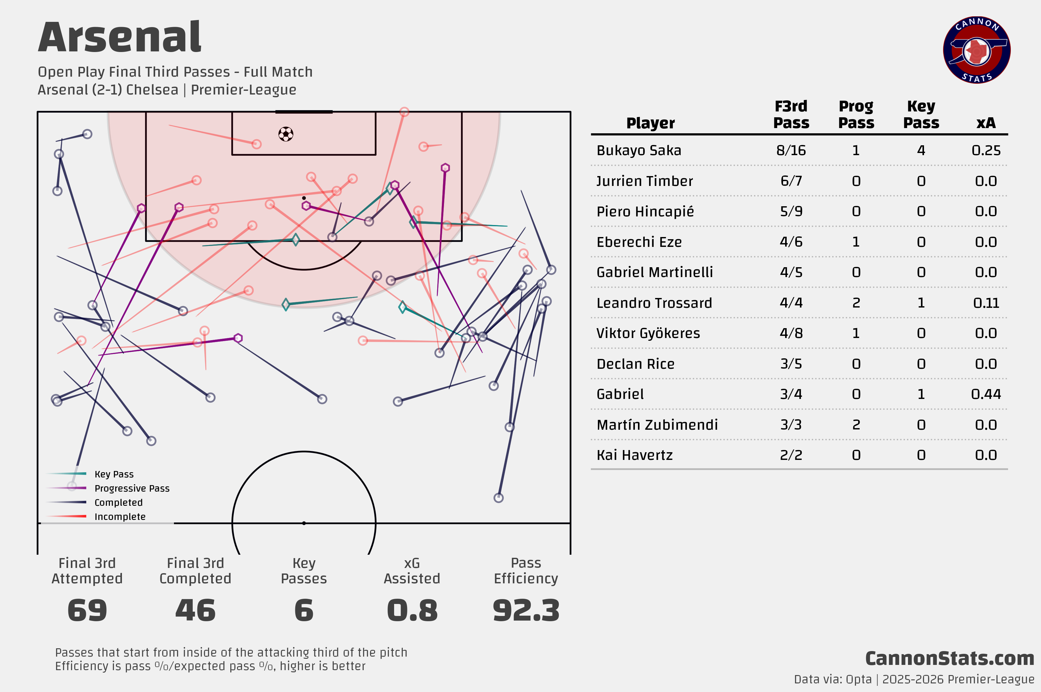 46 - Passes completed in the final third from open play.