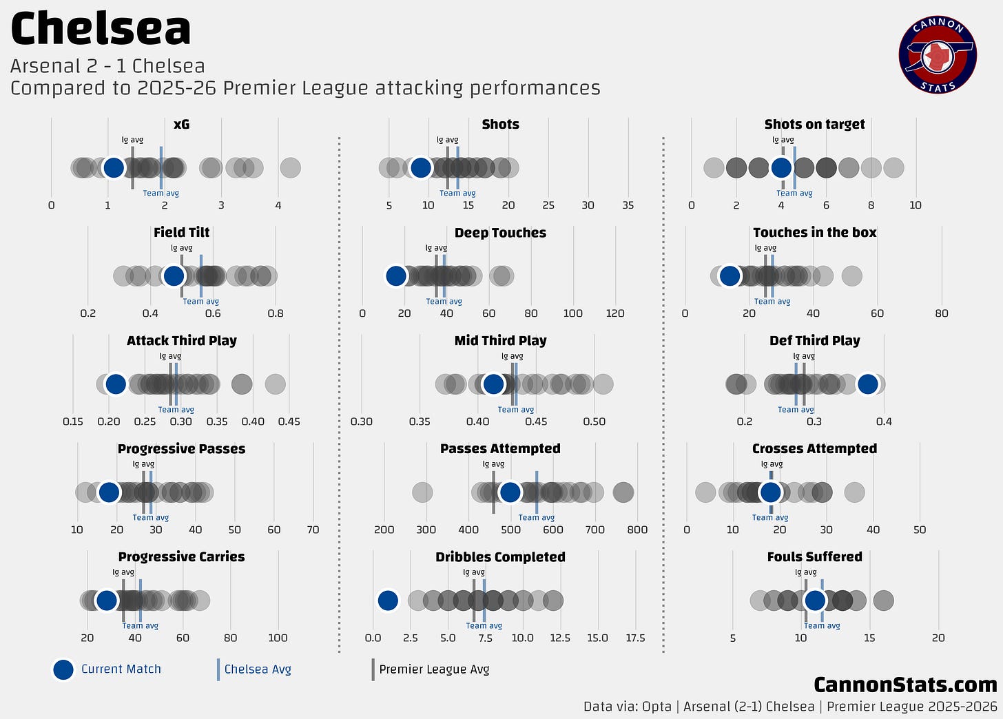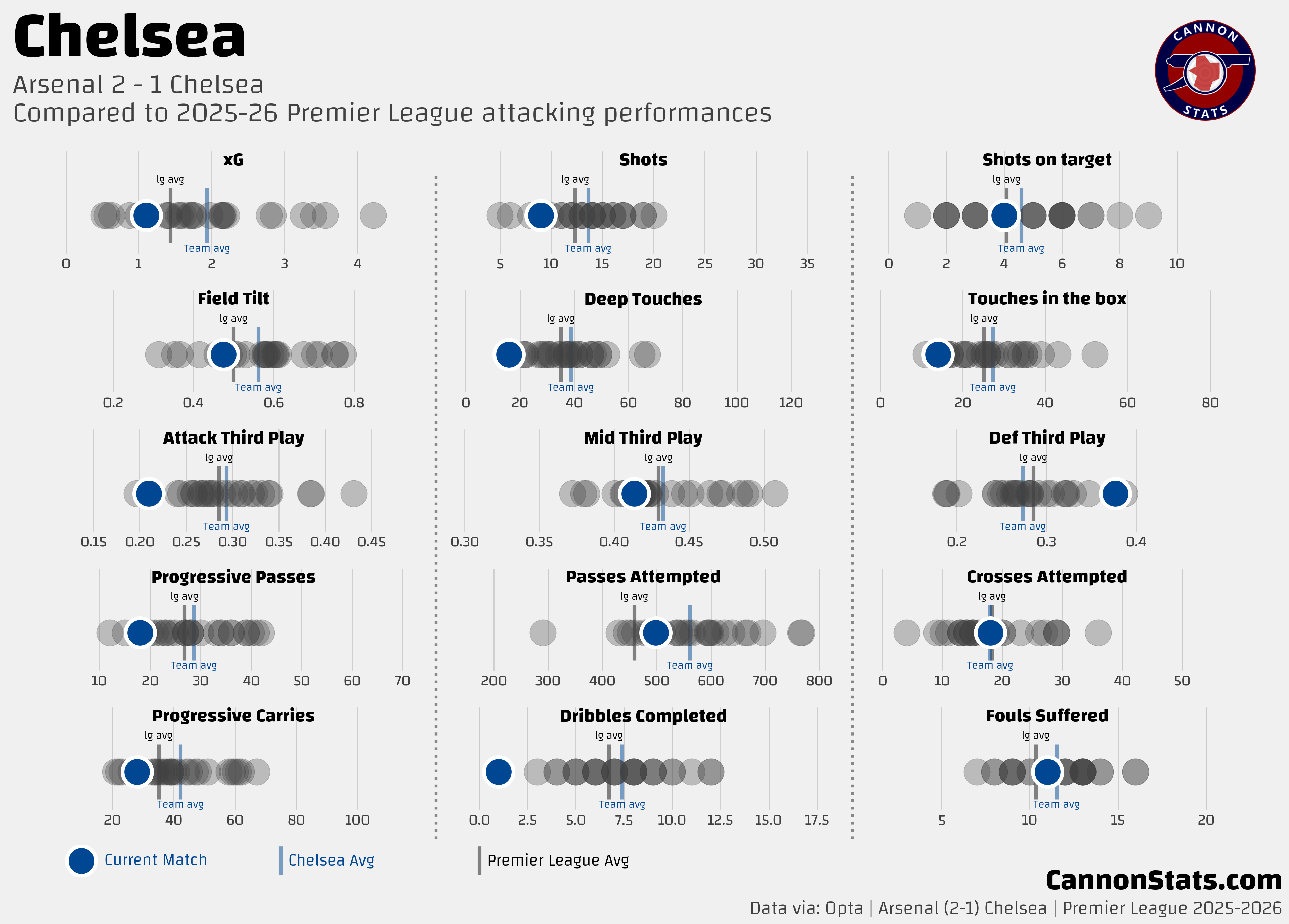 In this match, Arsenal basically shut them down. Here is what they did attacking compared to their average numbers this season.