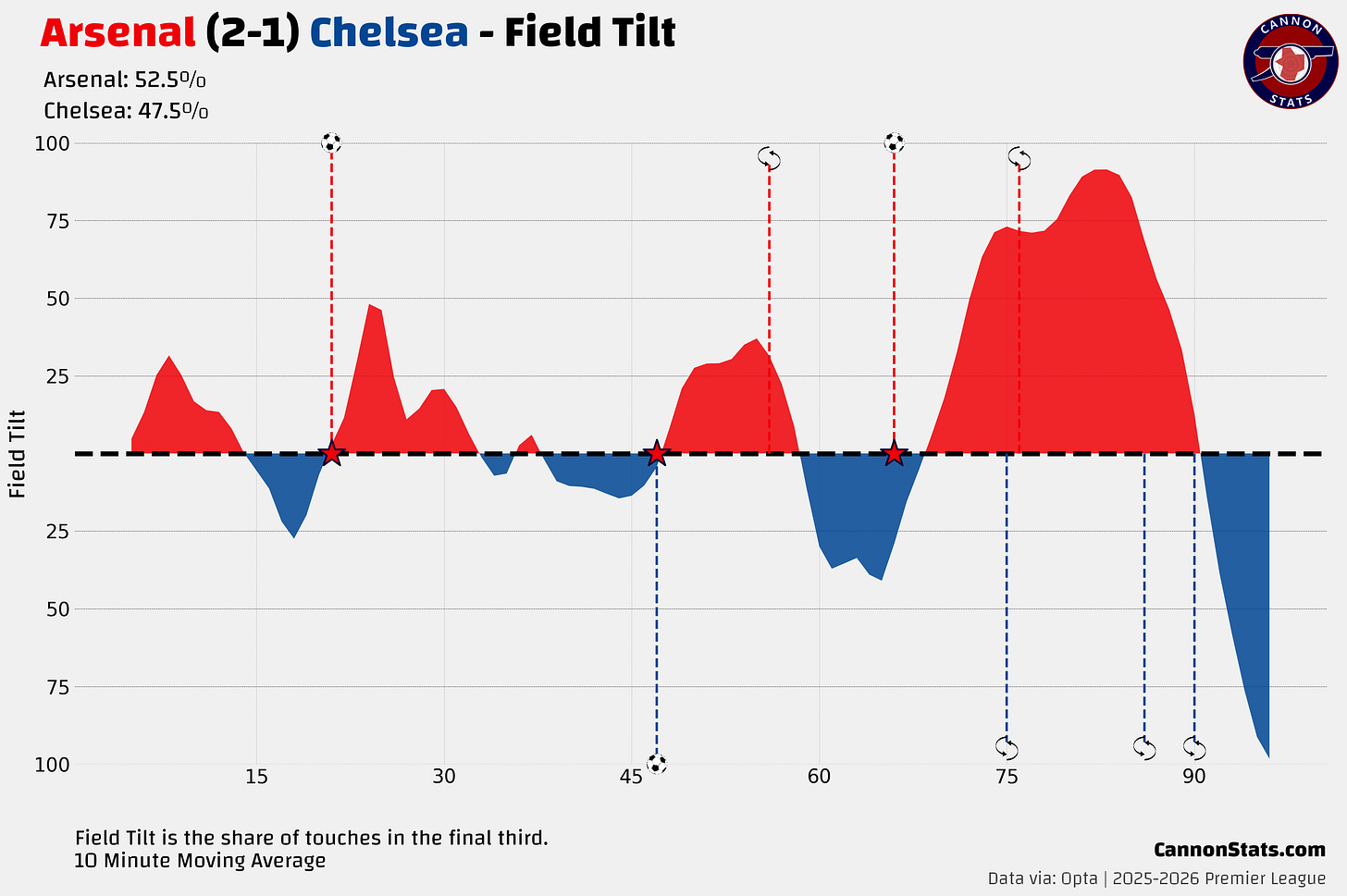 I do think that there is a bit of a potential correlation that this is also the season where Arsenal have less control, especially in pivotal high-pressure situations than they had in season’s past. Zubimendi may play the same position as Jorginho and Thomas Partey but he does it in a different style and I think that is apparent in matches like this.