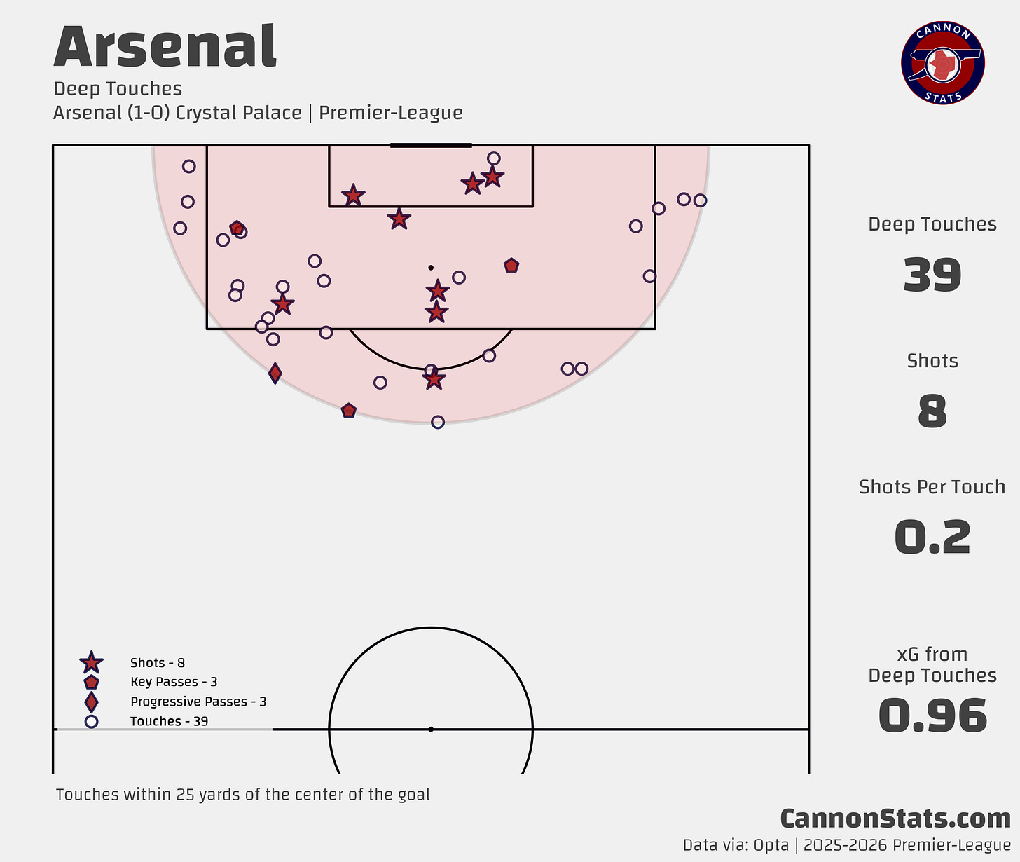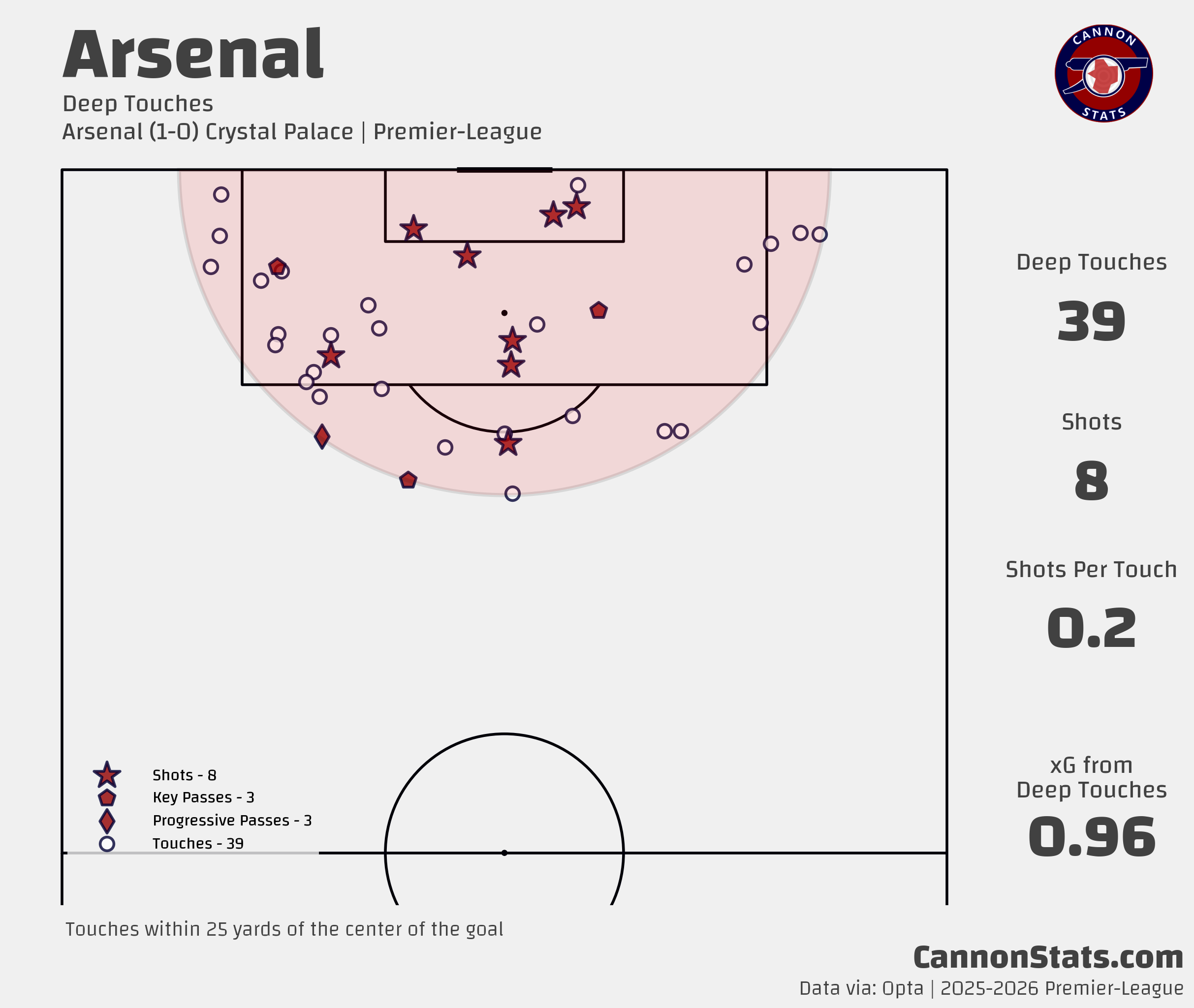3 - Deep Touches, touches within 25 yards of goal (5th on Arsenal)