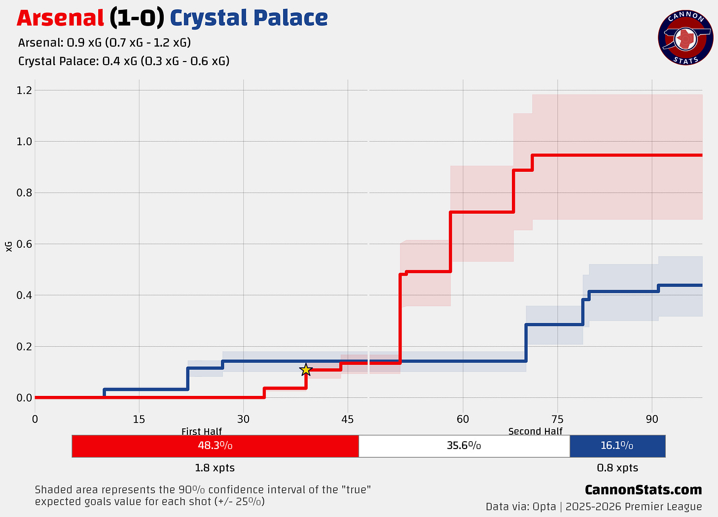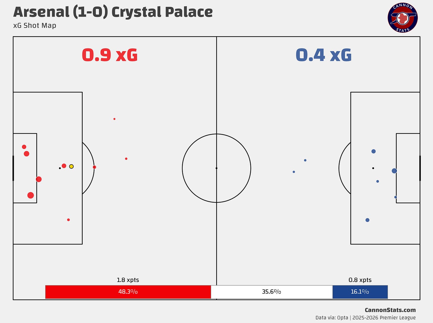 A quick Monday pop quiz for the class: Which of these verifiable facts are we fixated on after Arsenal’s 1-0 win over Crystal Palace, a club in top-five form in 2025, which padded the Gunners’ first-place lead to four points?