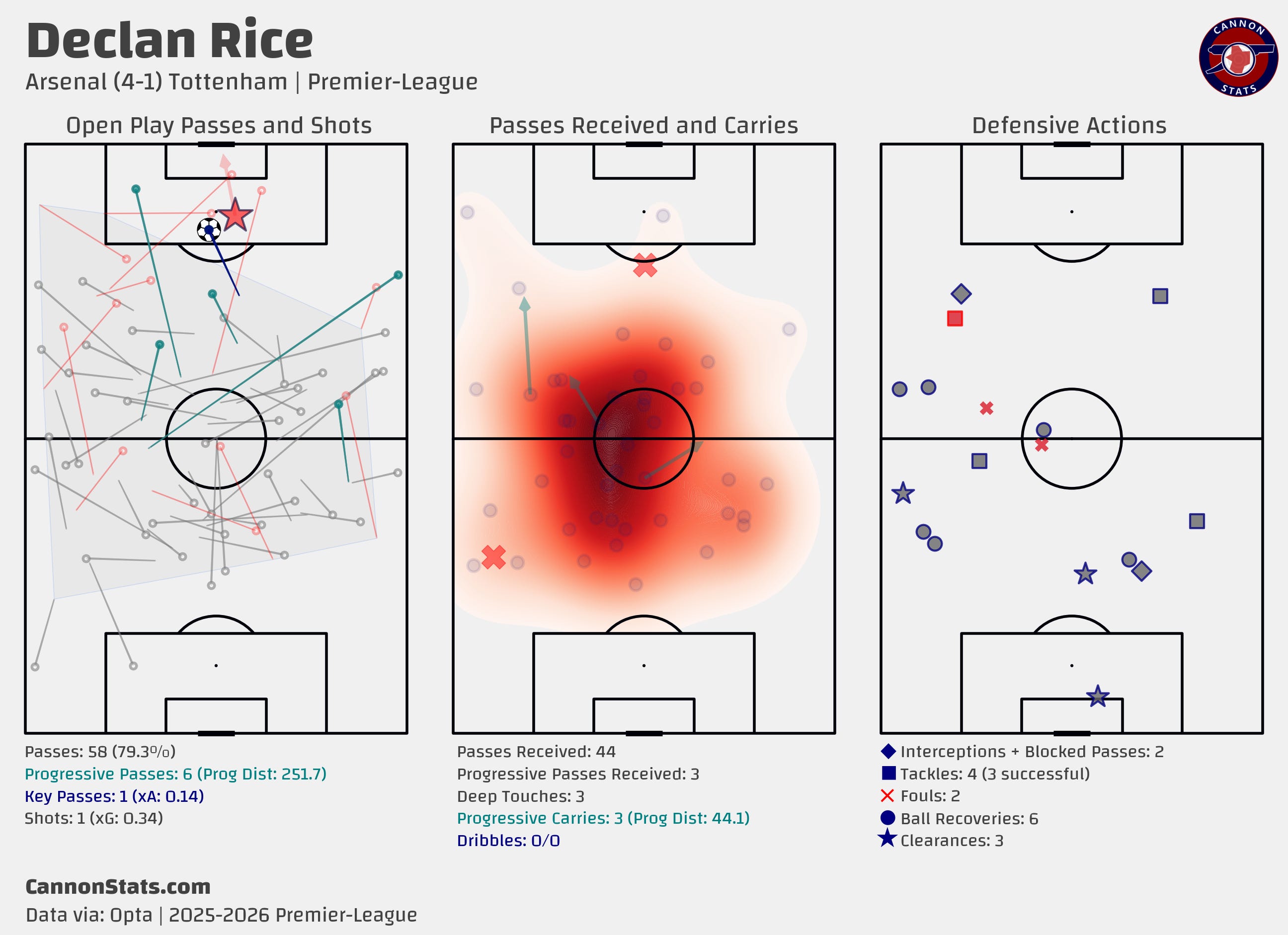 One of the takeaways that I had from looking at how Arsenal have changed since Odegaard has been out, is that Rice has been a player that has taken a major step forward. This was another match where I just came away so appreciative of having him in the midfield covering every blade of grass.