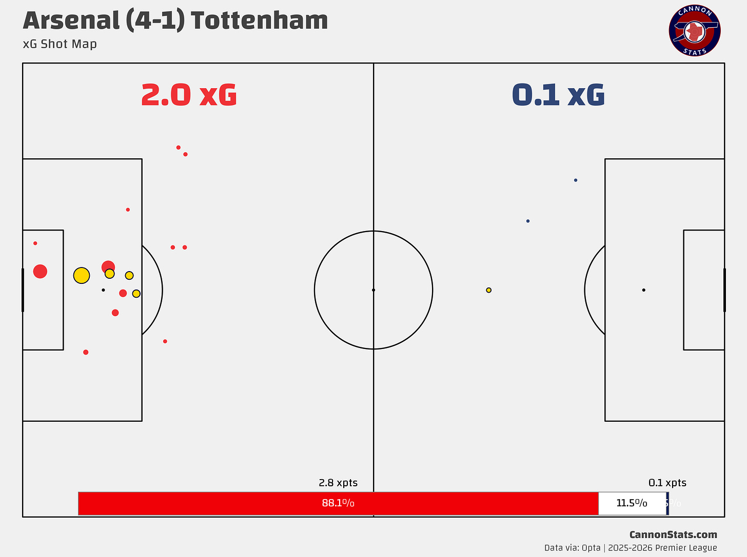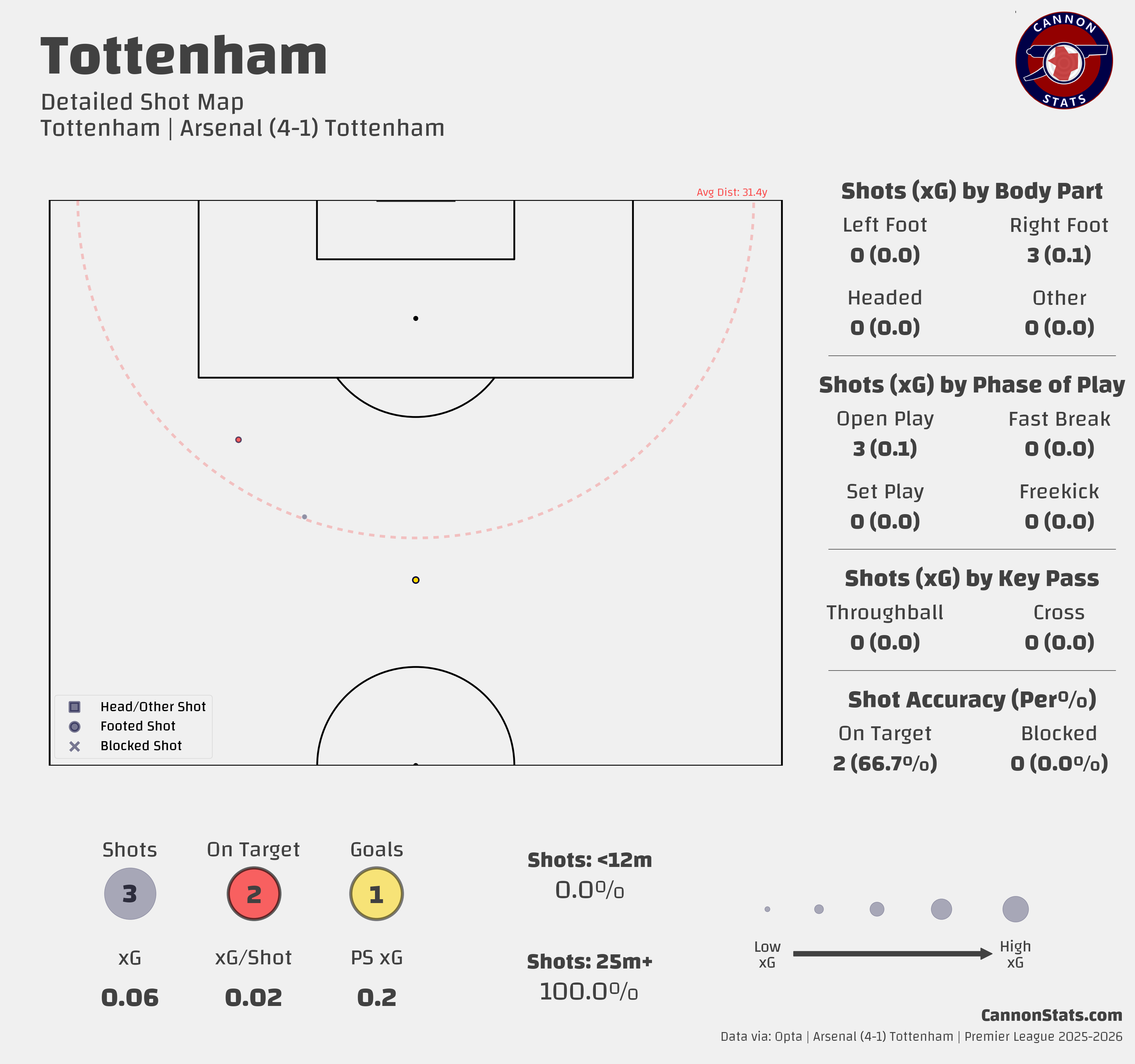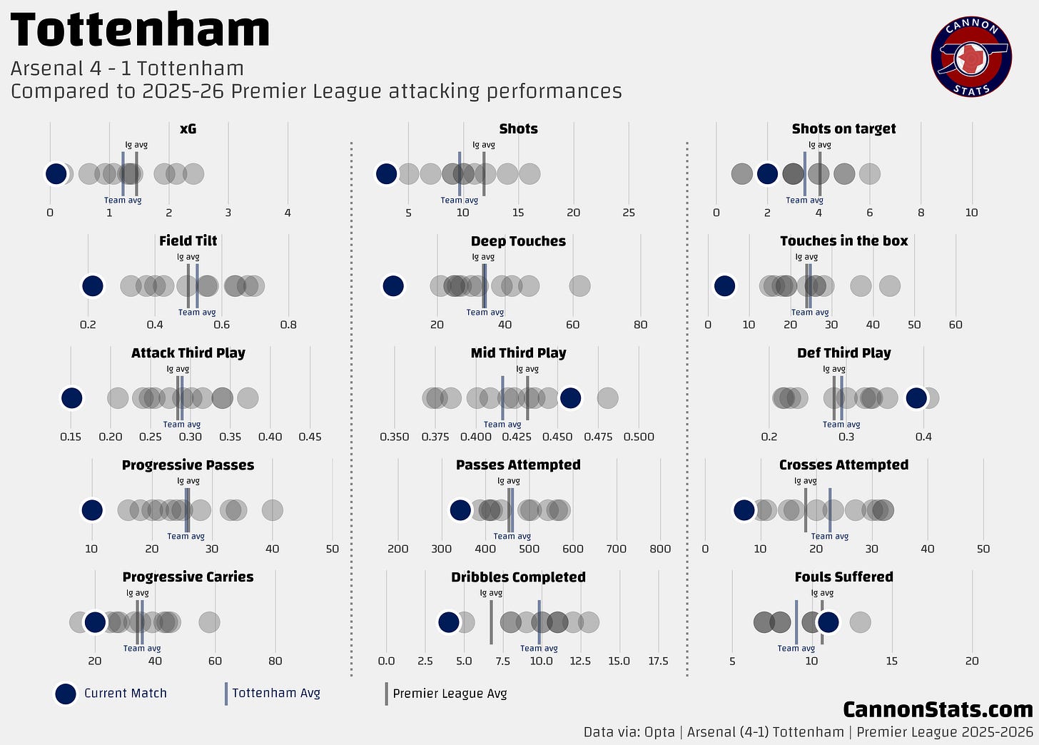 0.1 - The expected goals for Tottenham (rounding up here to the tenth spot), the lowest output again since that 2021 match against Crystal Palace.