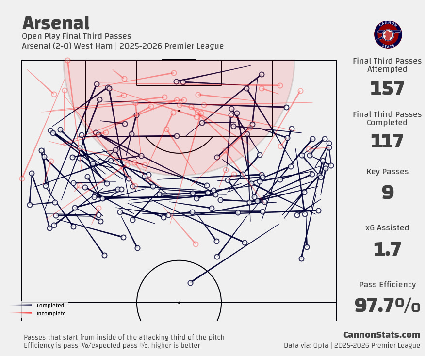 Between those big chances, West Ham got into Arsenal’s box just 4 times and they really offered no threat at all against Arsenal’s defense.