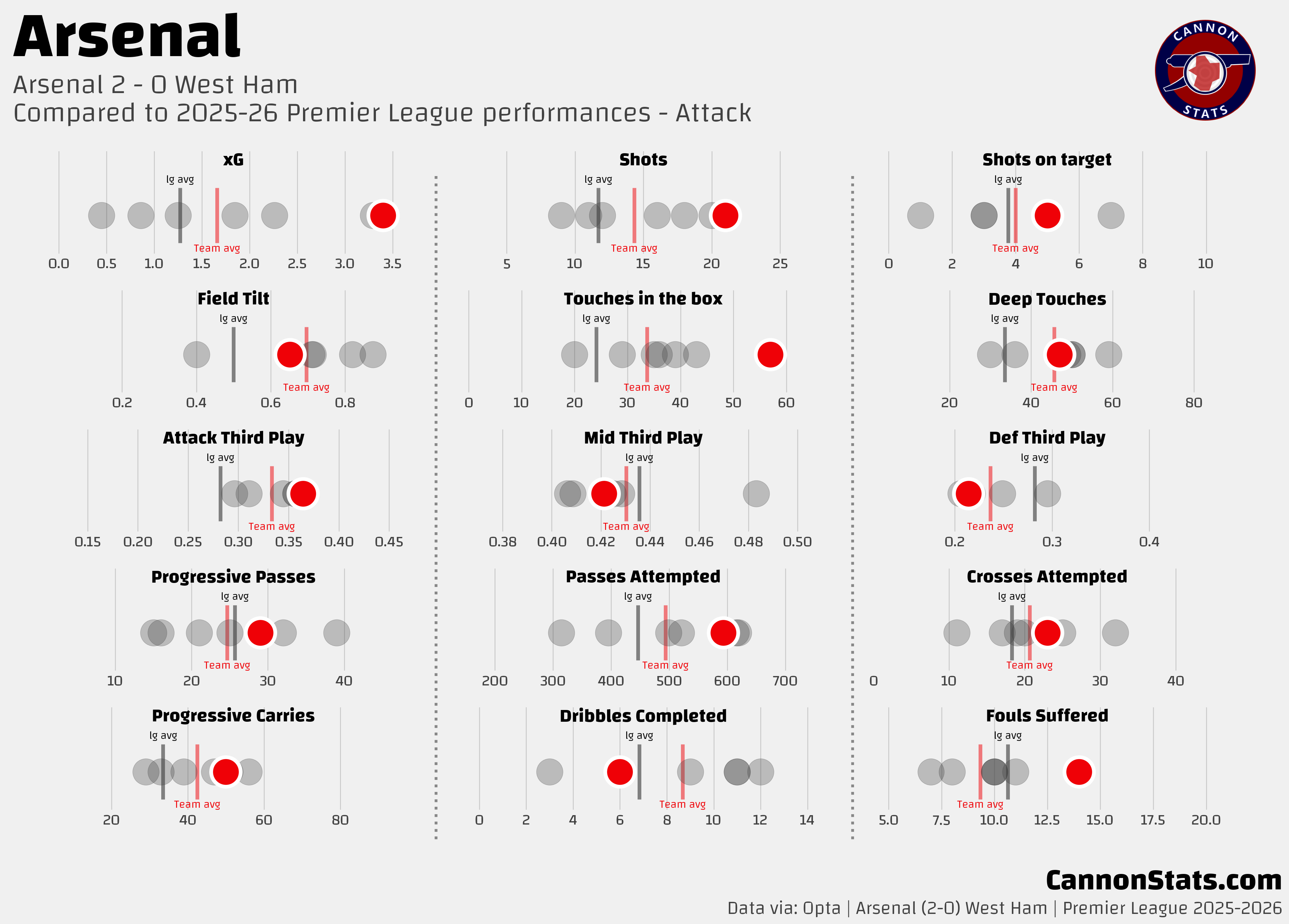 2.0 - Expected goals for Arsenal from open play, before this Arsenal had just 2.76 open play xG in the League this season. They had 12 open play shots in this match which another season high.