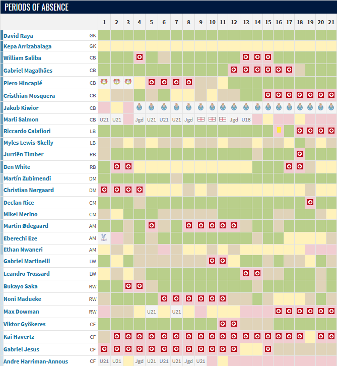 At time of writing, Kai Havertz had appeared in just three matches across all competitions, playing just 62 minutes total. Madueke, Saka, Gyökeres, Ødegaard, Gabriel, Saliba, White, Calafiori, Hincapié, and Cristhian Mosquera are among the many who have missed weeks or even months with injuries at various points this season. If the parade of injuries ends or slows any time soon, surely Arsenal offer an even stronger group for what is sure to be a stressful run-in.