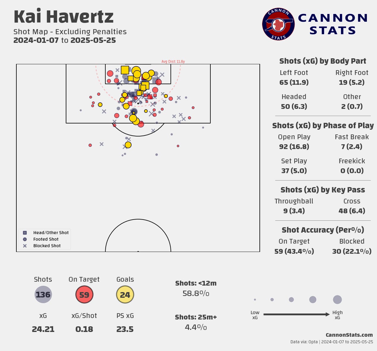 He came in as a prolific goal scorer, and that along with his ability to get shots were the big selling points of the player and were things that directly addressed what the current Arsenal options as a striker lacked. Even adjusting down the expectations for him, he hasn’t hit them. A half season is not enough to make a final conclusion on the player by any means but given that Gyokeres was signed to complement and/or replace Havertz, that we are still uncertain about him makes this more complicated than we would like.