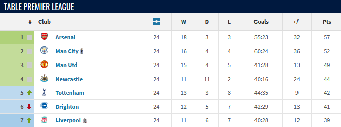 Arsenal are approaching the final stretch run of the season and are leading the Premier League by 6 points after 24 matches, ahead of Manchester City.