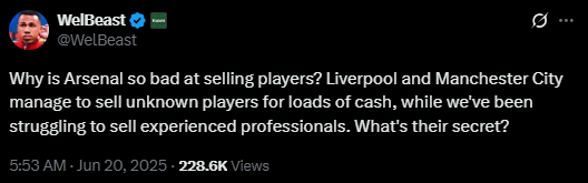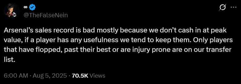 There’s a saying out there commonly attributed to Benjamin Franklin that roughly says you can only count on two things in life: Death and Taxes. Among Premier League fans, I’d add a third, which is Thinking Arsenal are Bad at Selling.