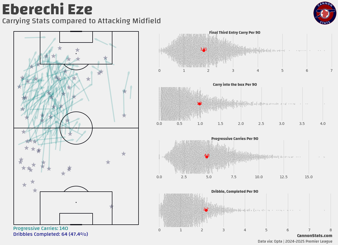 This is exactly what Eze potentially represents for Arsenal and some of those other questions don’t matter nearly as much. He represents really well the type of capstone, luxury player that helps finish off a very good squad. Arsenal’s squad before this was excellent and could have won the Premier League or Champions League, with him in the squad there is that little bit extra that in those marginal matches where things are tough or the attack isn’t quite clicking to provide the impact to turn a draw into a win.