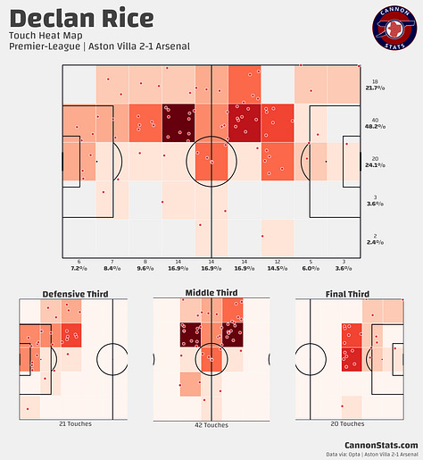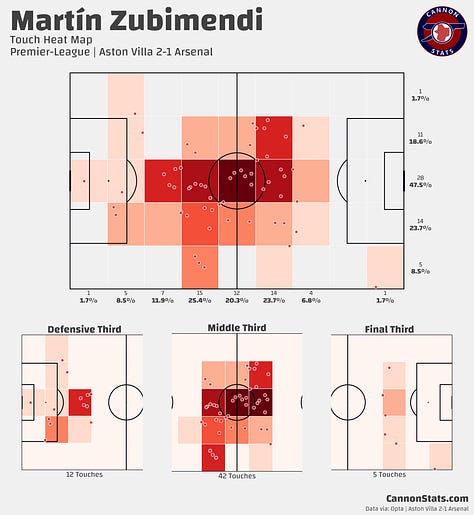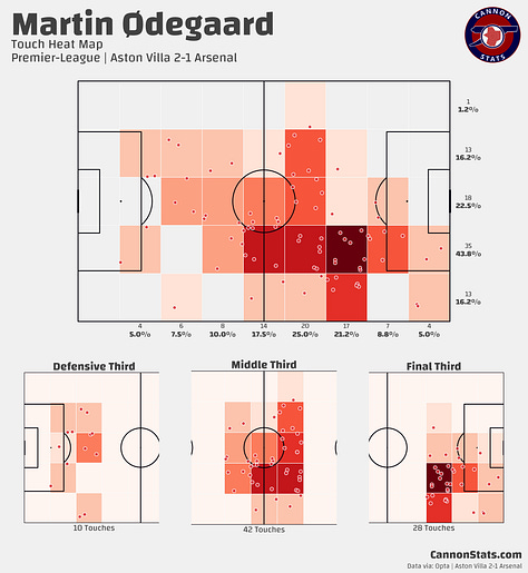 Overall, this was not a particularly extreme match for Arsenal on the tilt towards the right-hand side. Overall, for the season this is not a particular outlier performance with Arsenal still favoring the right even without Odegaard in the team.