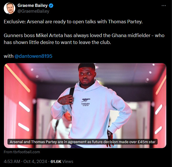 Thomas Partey is in the final year of his contract that he signed when he joined the club. The news about potentially extending him at the regular spots have come and gone and now he is looking at being a free agent at the end of the season and the ability to agree to a deal with a team outside of England in a few months.
