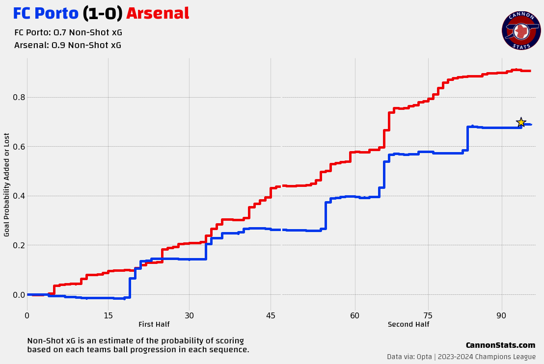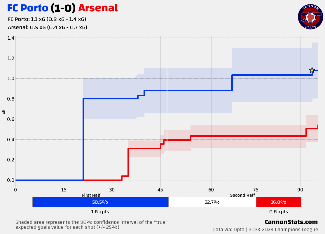 Porto could have and should have gone ahead with a pair of big chances from a pair of defensive lapses by Jakub Kiwior and William Saliba (who looked off all day), with Wenderson Galeno going off the post and then inches wide in quick sucession.