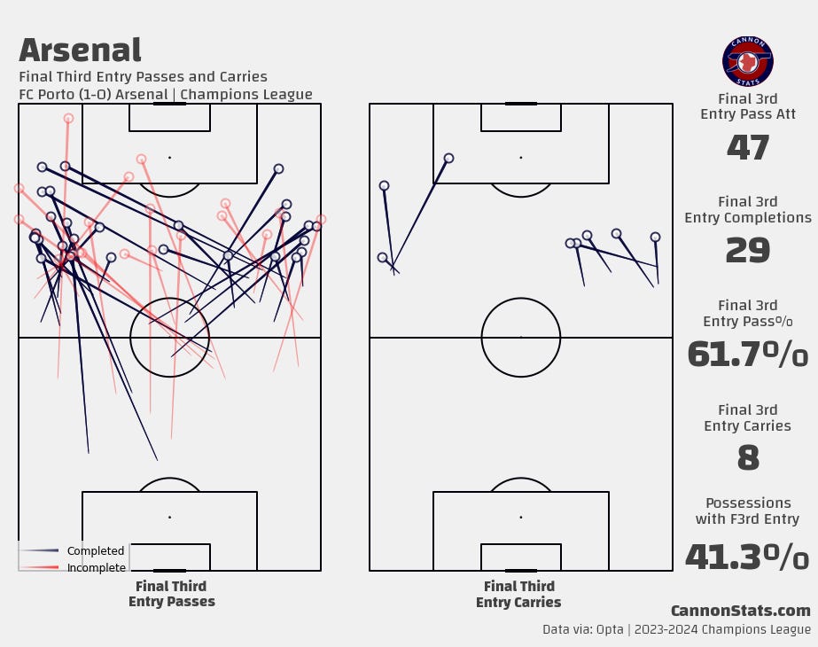 This was one of the worst overall performances from Arsenal in general for ball progression and getting into dangerous locations.