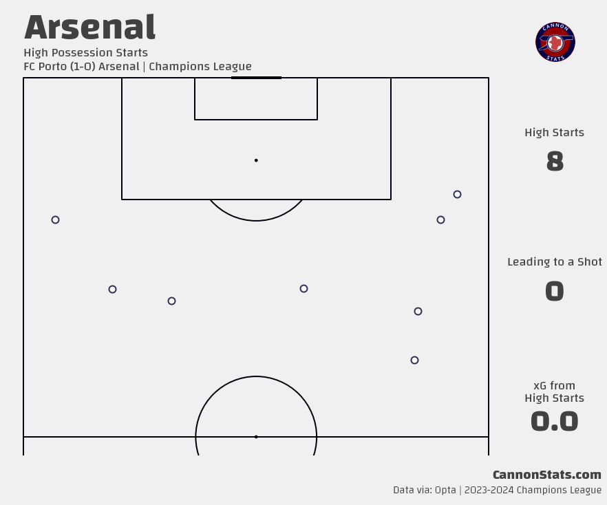 Arsenal pressed okay here, holding Porto under their expected pass completion and mostly keeping them from advancing the ball but it didn’t turn into anything either.