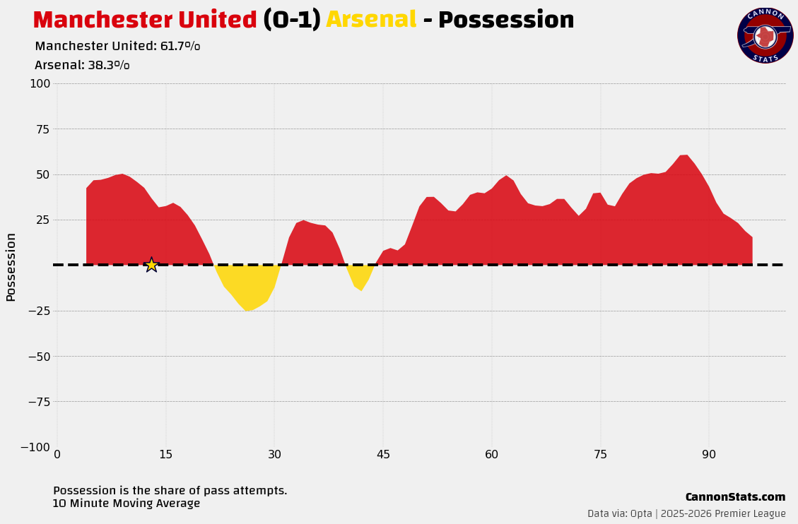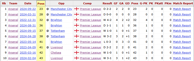 Outside of Tottenham away last season (and excluding the red card matches) this would have been the lowest possession Arsenal recorded and would slot in as the 7th lowest in the past three seasons.