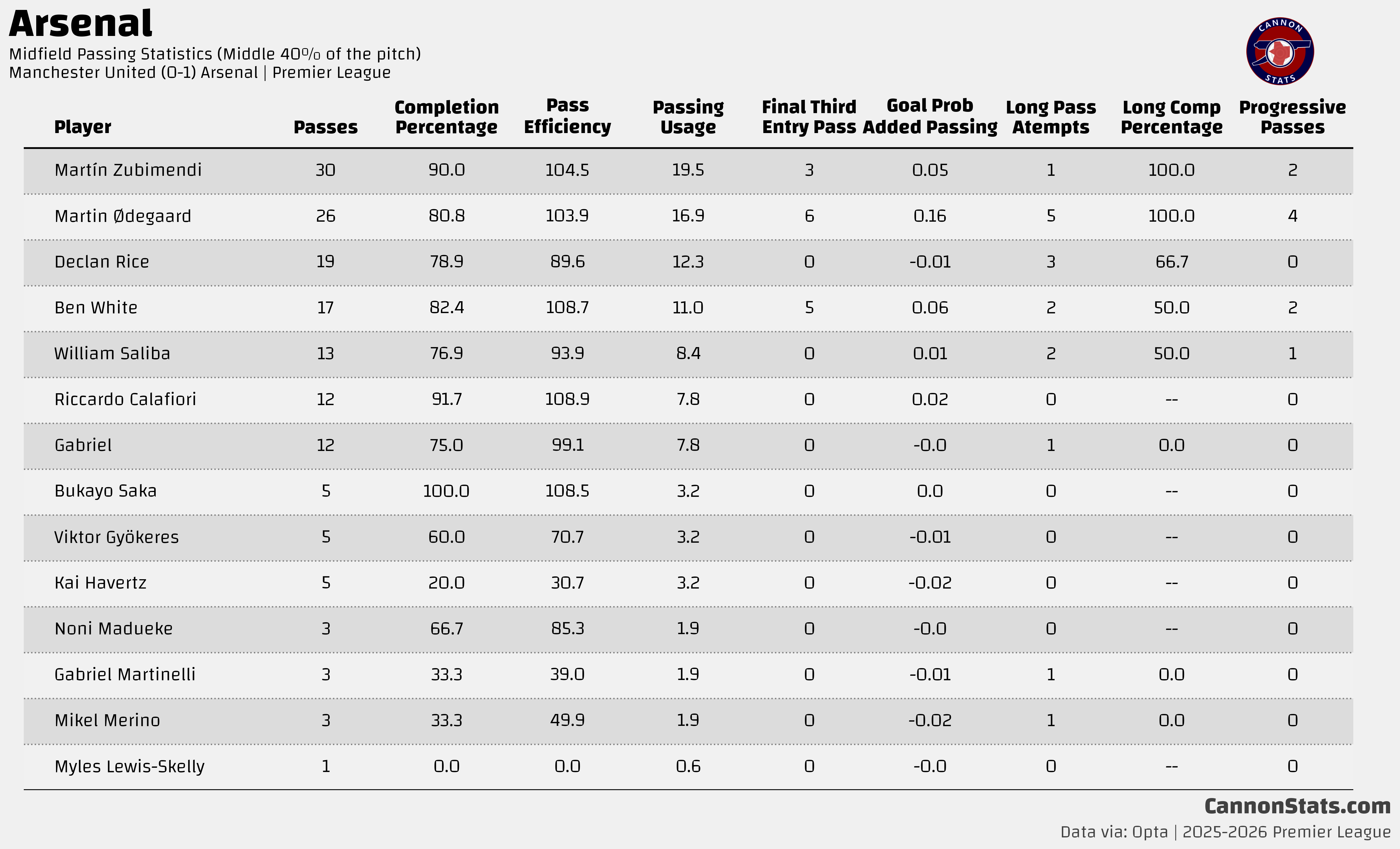 It didn’t come off every time here and seeing Arsenal completing fewer passes than expected is a rare sighting. Here is a look at the team overall in the middle of the park.
