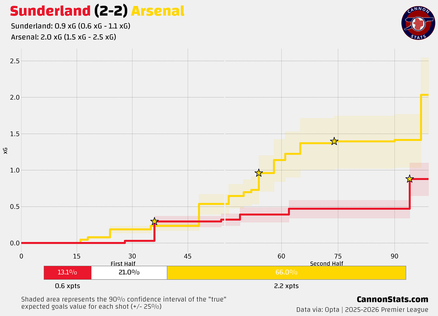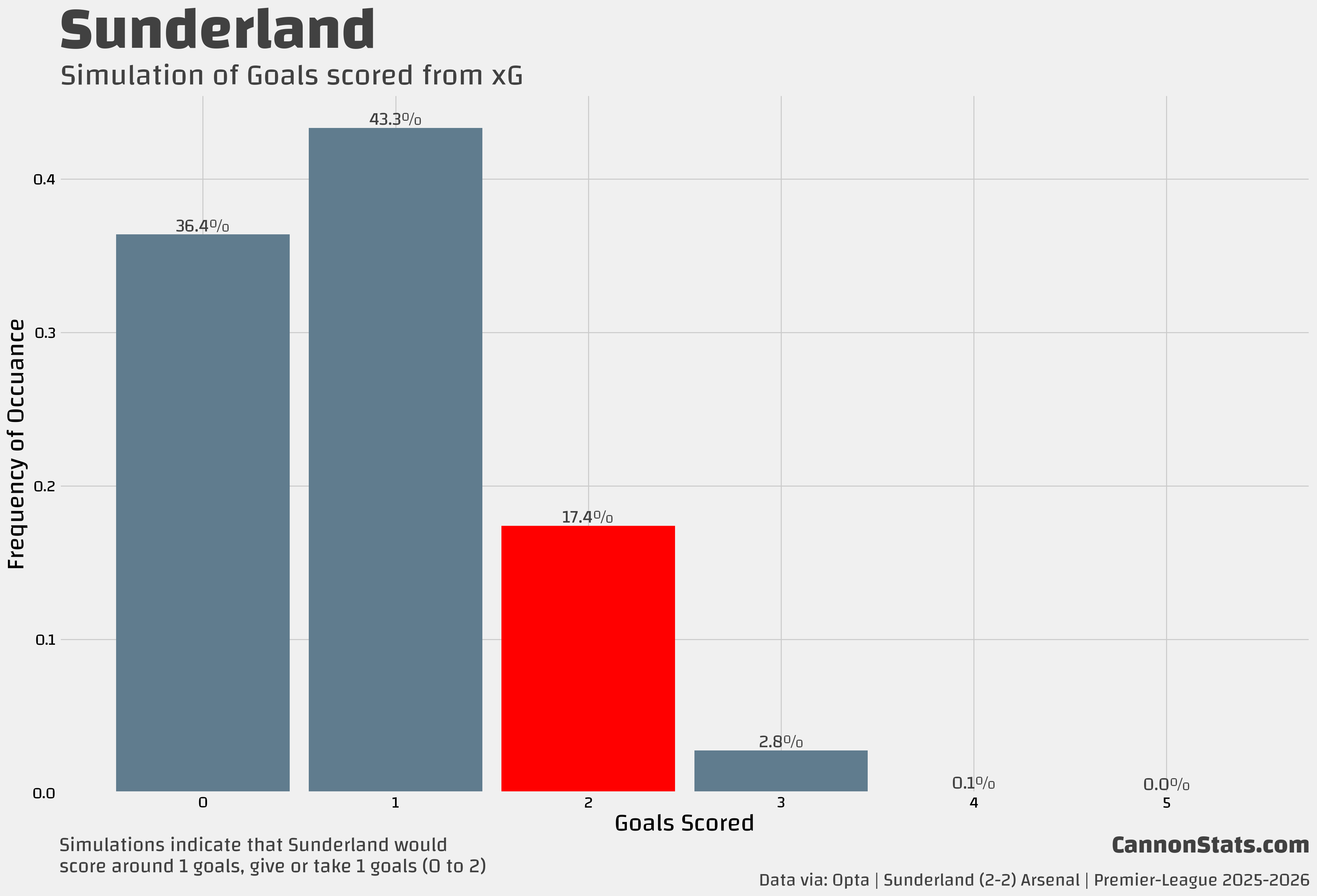 Even if it doesn’t work this way, Arsenal had been riding holding teams to the left side of the distribution on the goal outcomes and ran into one on the right-hand side here.