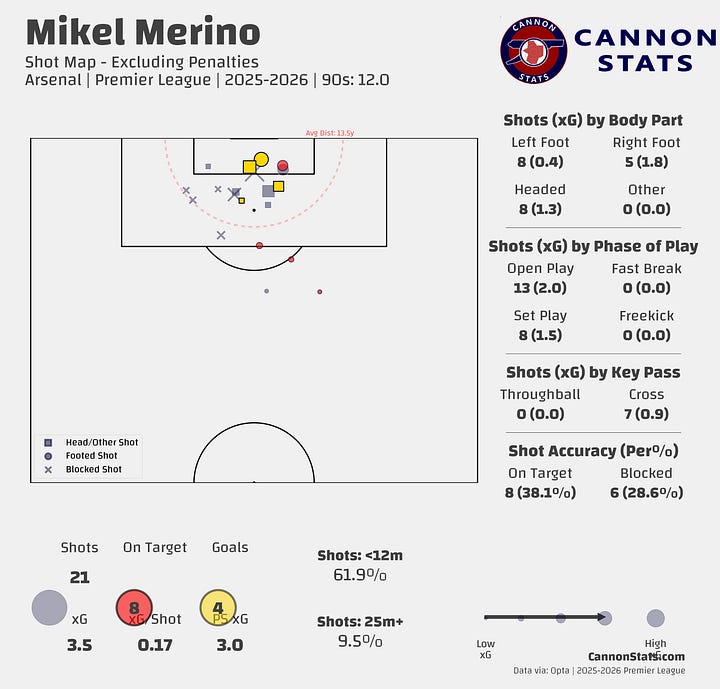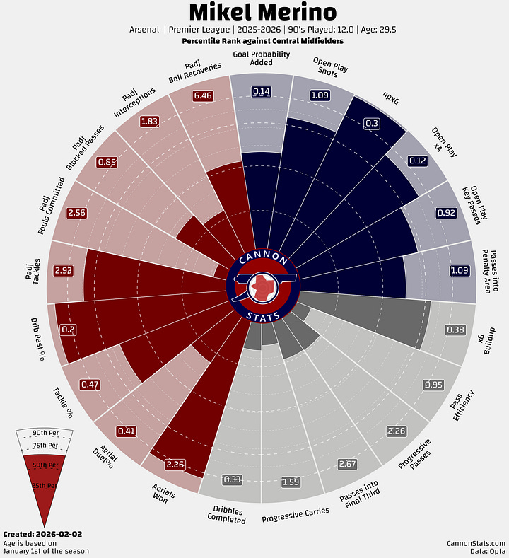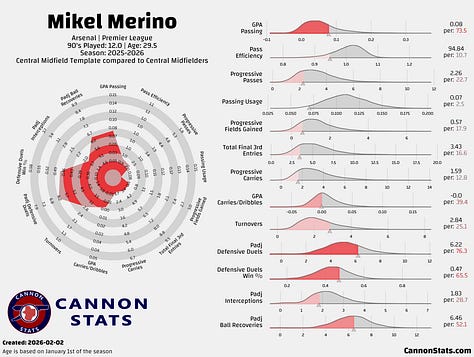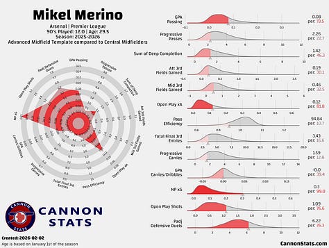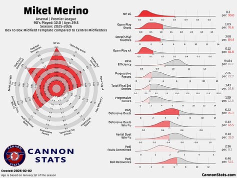 If Arsenal decline to move for a Merino replacement, that would leave the side with essentially three options up front — Jesus, Gyökeres, Havertz — along with Declan Rice, Havertz, Martin Ødegaard, Ebere Eze, Martín Zubimendi and Christian Nørgaard to split minutes in the three midfield positions. That’s without more creative or less-proven options like Myles Lewis-Skelly, who appears to be a long-term midfielder, and others such as Leandro Trossard, who could always move more to an inside 10 role in a pinch.