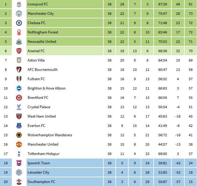 One other piece of perspective that might help - I’ve encountered the point of view that losing places in the league could cost Arsenal money and momentum in terms of the project. The latter is of course more difficult to rebut (and I generally don’t agree) but on the money note, here are prize awards from last season: