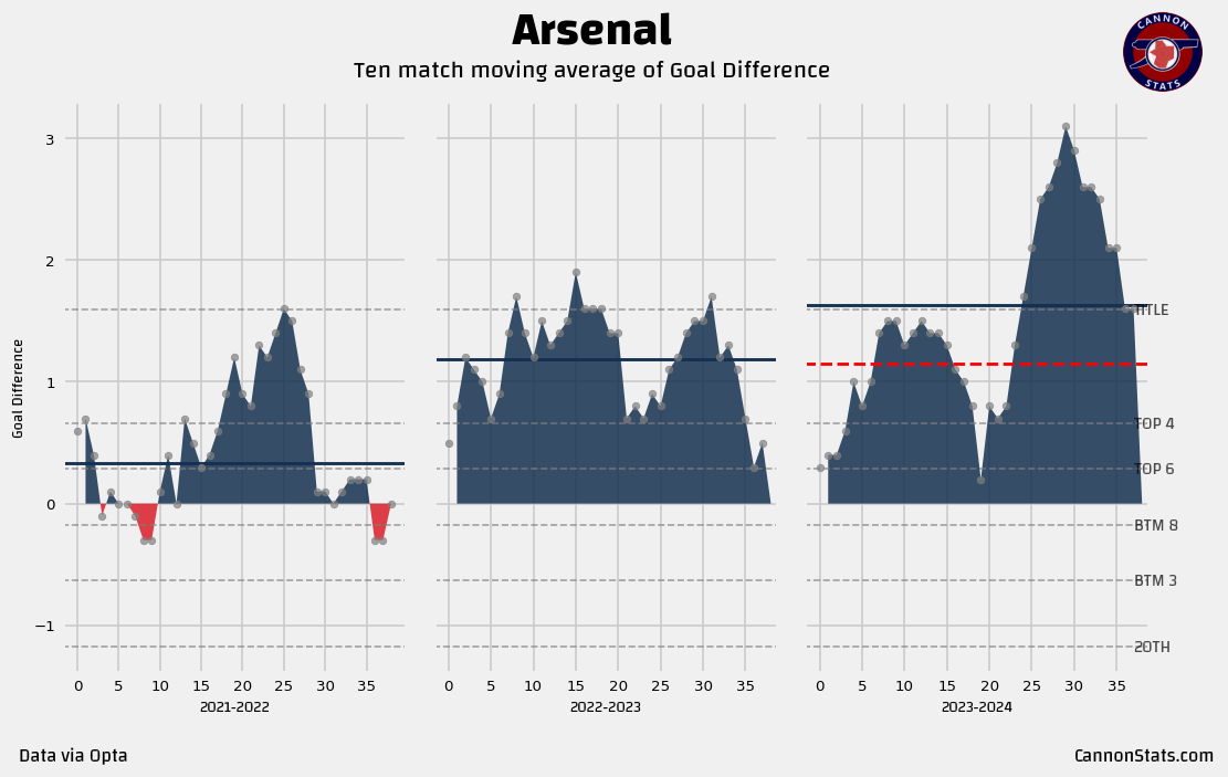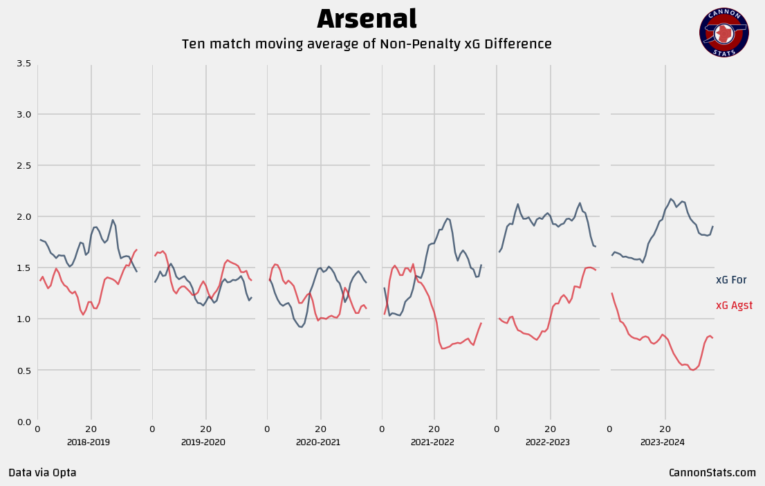This season it feels like the team still can and needs to go up a level if they are going to be able to surpass Manchester City. This season I am going to use the average of the teams that finished in 1st place only. This is the goal and that is going to be the baseline for my expectations. If Arsenal can perform like an average 1st place team, I think they will have a very good shot of winning the title, and even if they fall short again, it won’t be because they didn’t perform well enough.