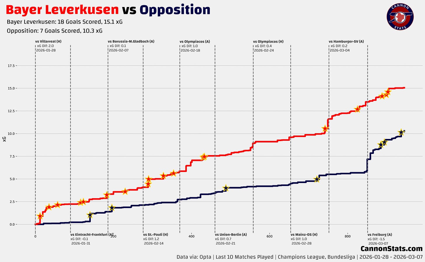 Leverkusen have lost just once in their last 10 matches played between the Bundesliga and the Champions League. They have managed 6 wins and have generally been better than their opponents over this stretch.