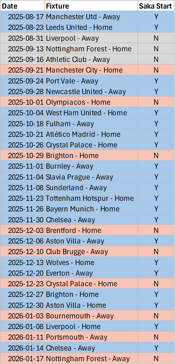 Arsenal seemingly chose to go closer to full strength this week in the first leg of their semi-final against Chelsea and showing a willingness to trust the squad against Forest. The big rotation was Bukayo Saka, and this was a continued trend where in this busy festive period, he has not started three matches in a row.