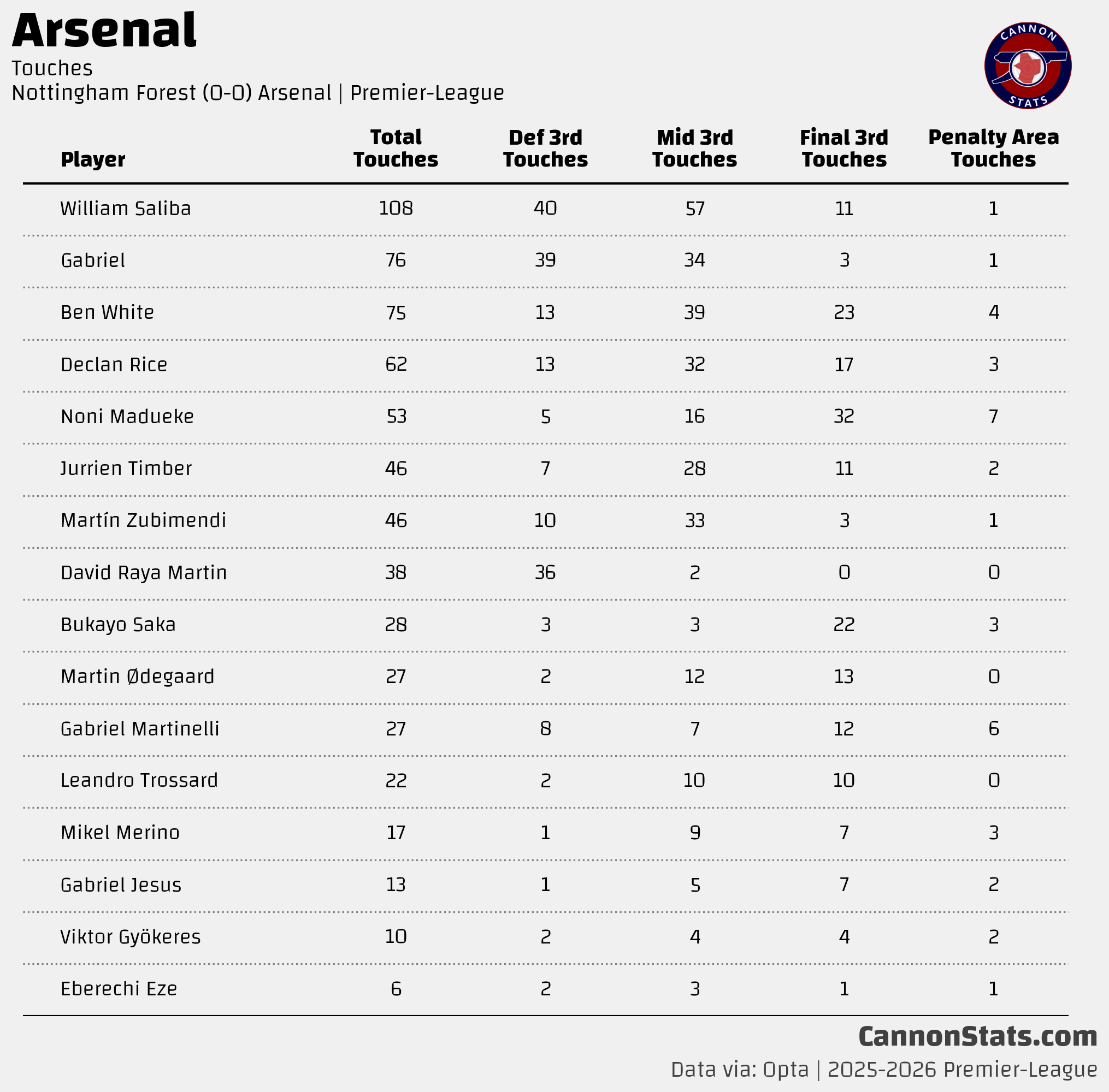 Nottingham Forest vs Arsenal: The Graphics