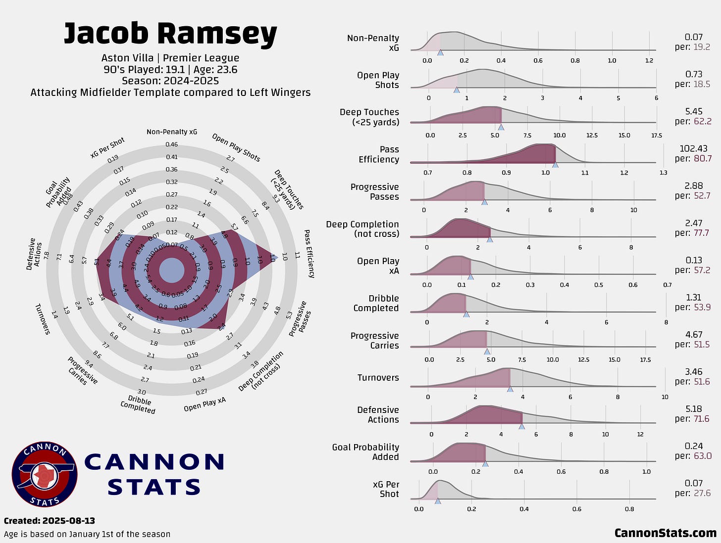 They are linked and close with Jacob Ramsey who is another plus athlete that fits the eye of Eddie Howe. His numbers at Aston Villa aren’t great but he was held back in a pretty conservative role that might change with a move to Newcastle.