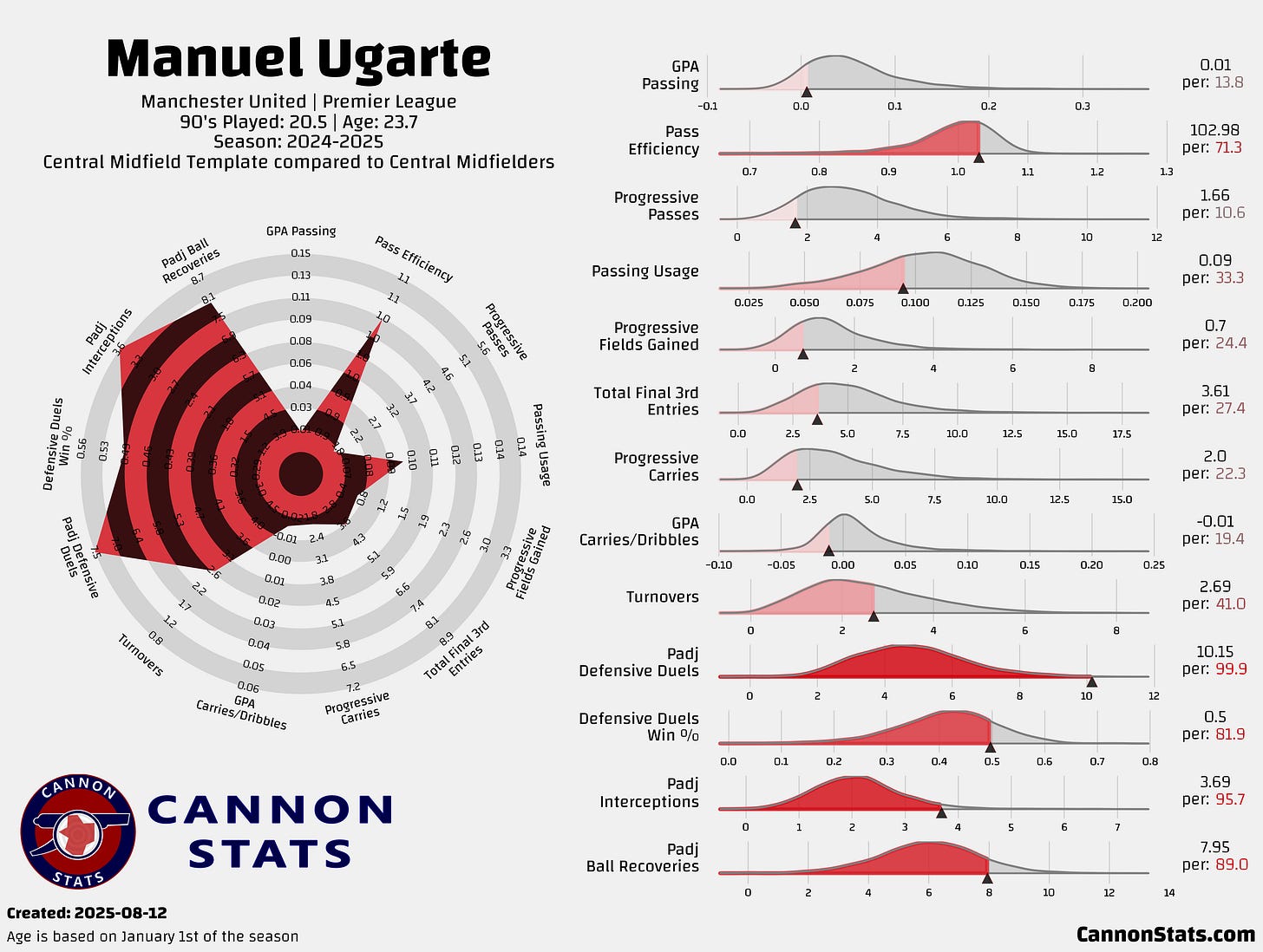 Manuel Ugarte was one of their big signings last season and the question mark around him was that same thing, he will win the ball and kick people but can he effectively pass the ball? His first season with United did not point to the answer to that question being yes.