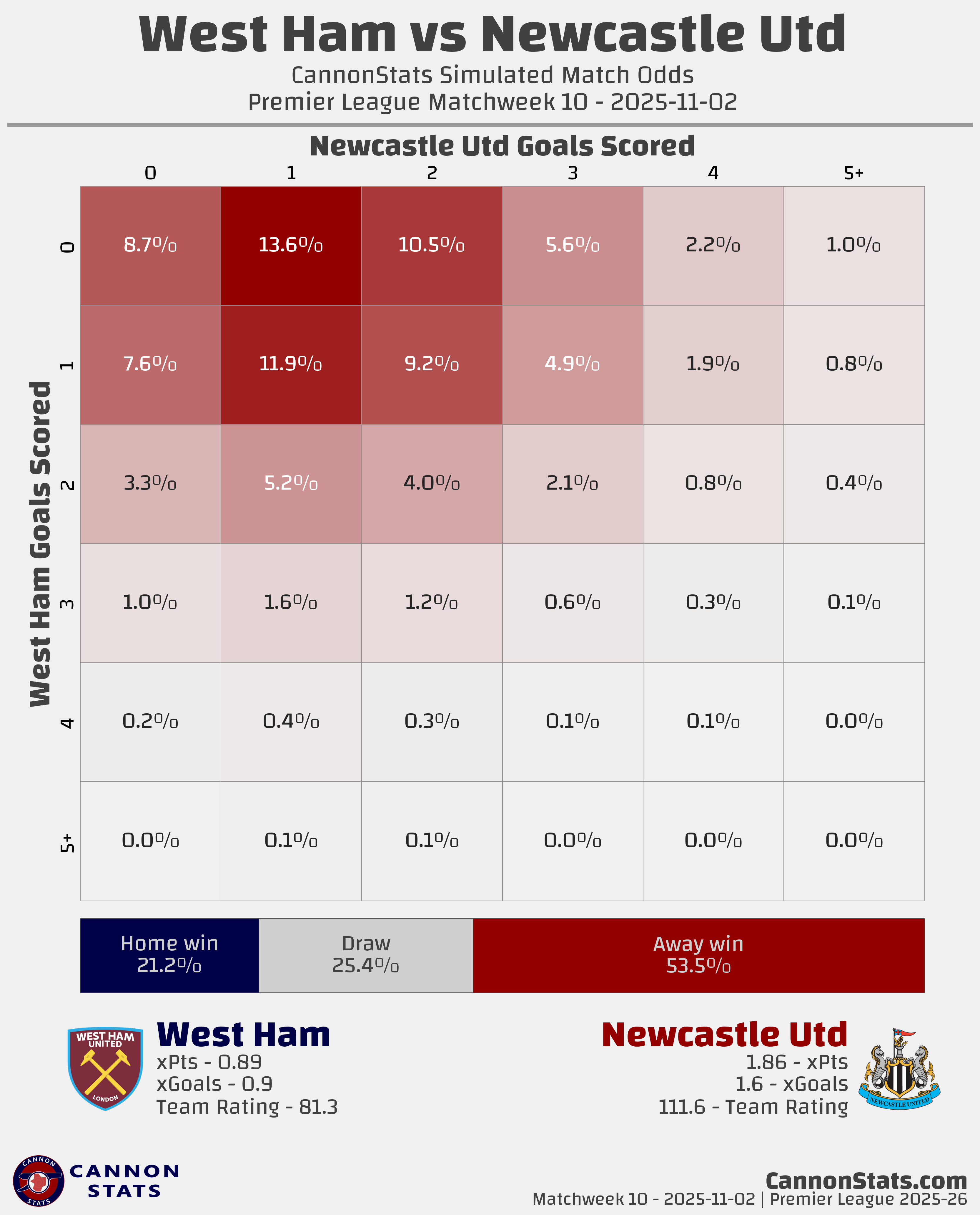 Newcastle Utd: Scott - 53.5%, Betting - 58.5%, Opta - 51.5%
