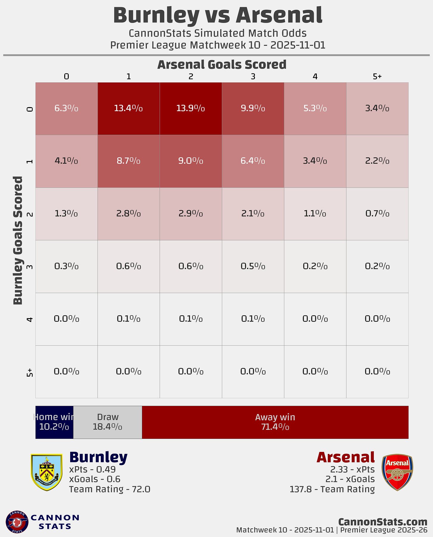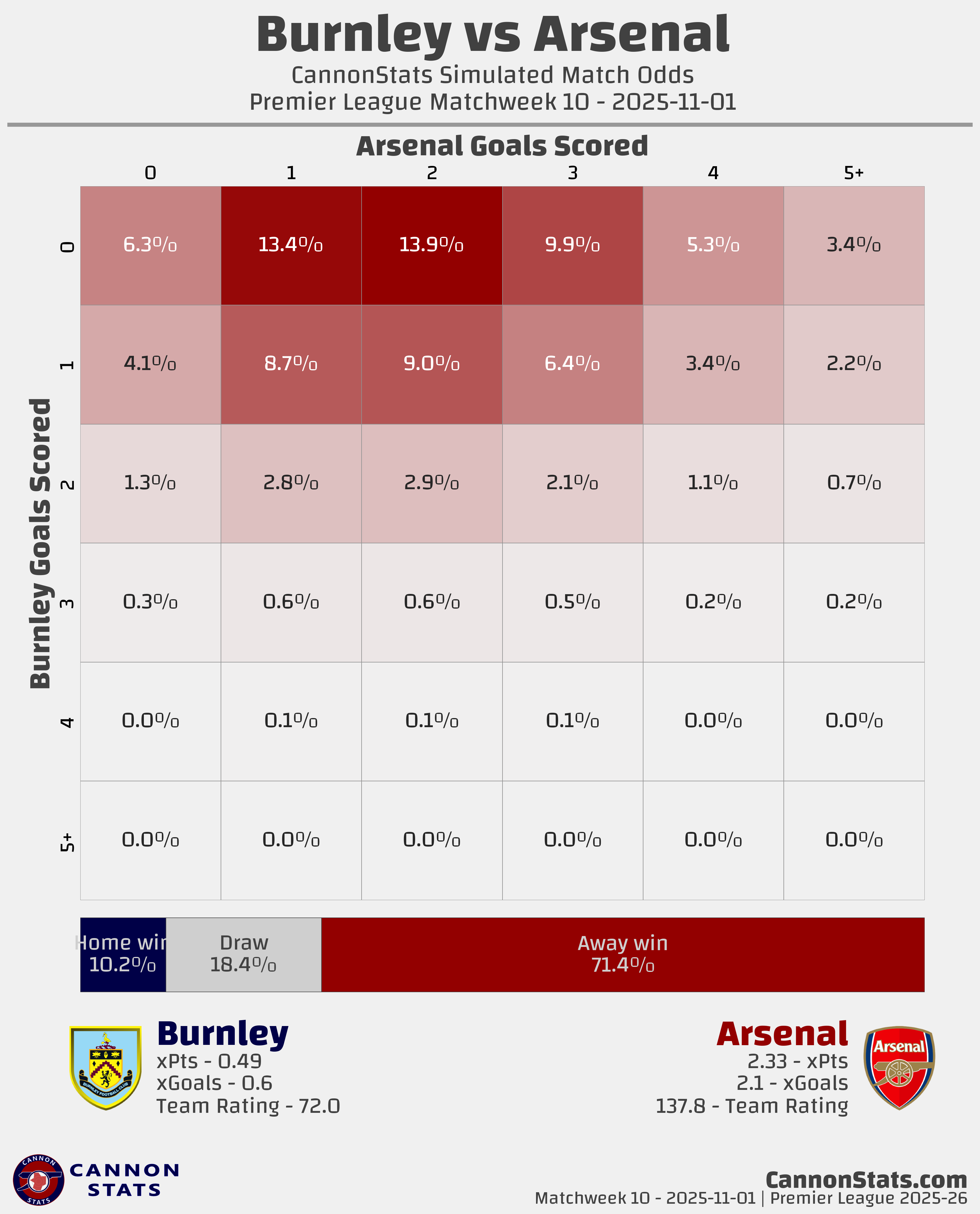 Burnley: Scott - 10.2%, Betting - 7.2%, Opta - 13.4%
