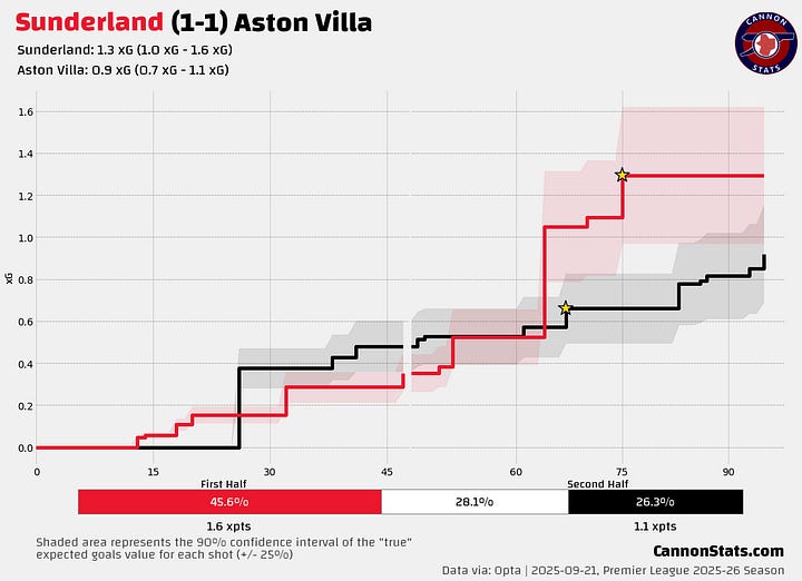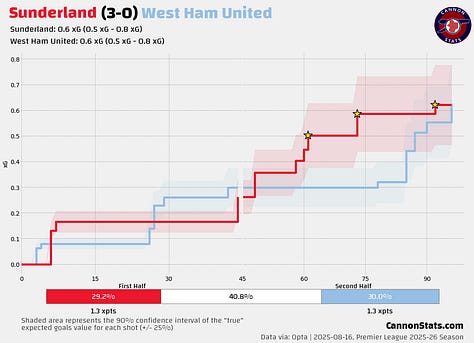 They have five wins this season and they have a combined xG difference in those matches of just +0.4.